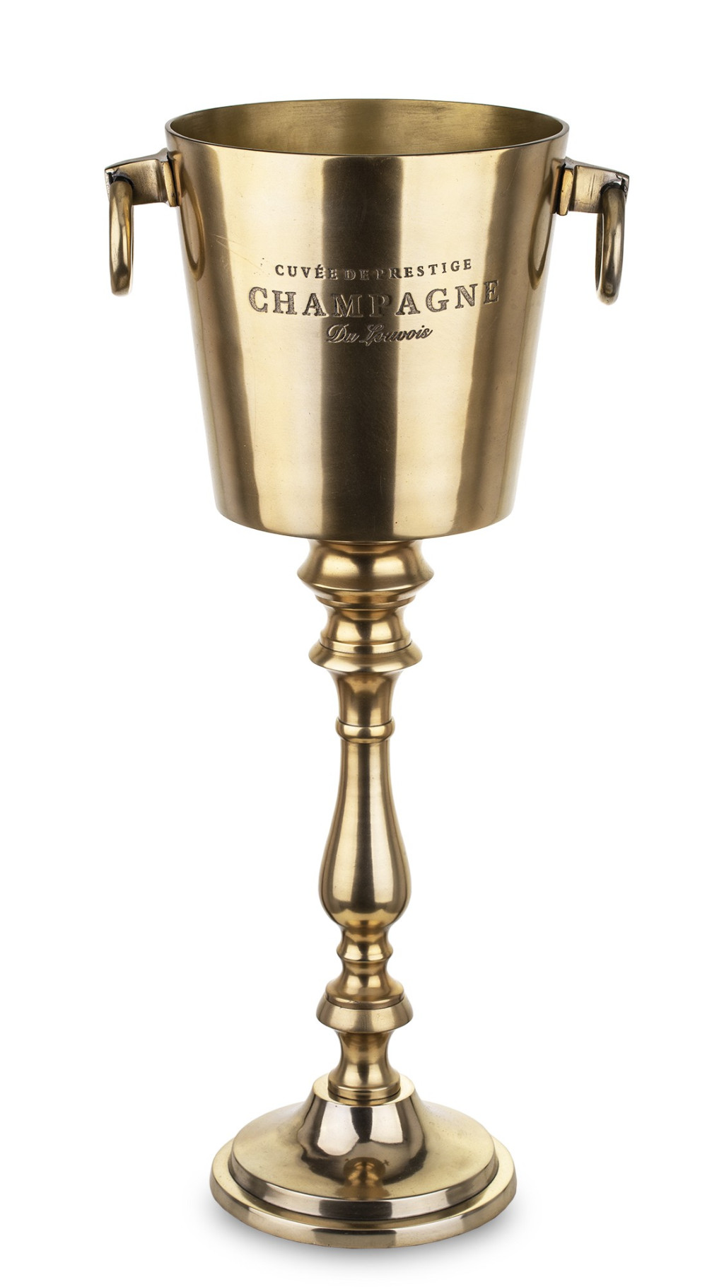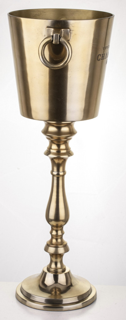 Elegáns, 66 cm magas arany színű fém pezsgőhűtő, stabil talapzattal és karakteres, klasszikus kialakítással. 32×24 cm-es méretének köszönhetően több üveg pezsgő vagy bor hűtésére is alkalmas. 4 kg-os súlya biztos tartást ad, így ideális választás rendezvényekre, éttermekbe vagy látványos otthoni tálaláshoz. Stílusos kiegészítő minden elegáns enteriőrbe.