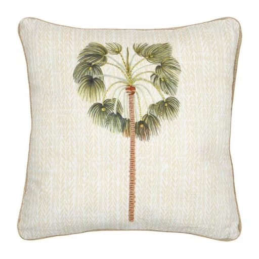 Hozz egy kis nyaralós hangulatot az otthonodba ezzel a gyönyörű pálmafás hímzéssel díszített díszpárnával! A részletes, kézzel kidolgozott pálmafás minta természetes színvilággal harmonizál, tökéletesen illik modern, boho vagy tengerparti stílusú enteriőrökbe.