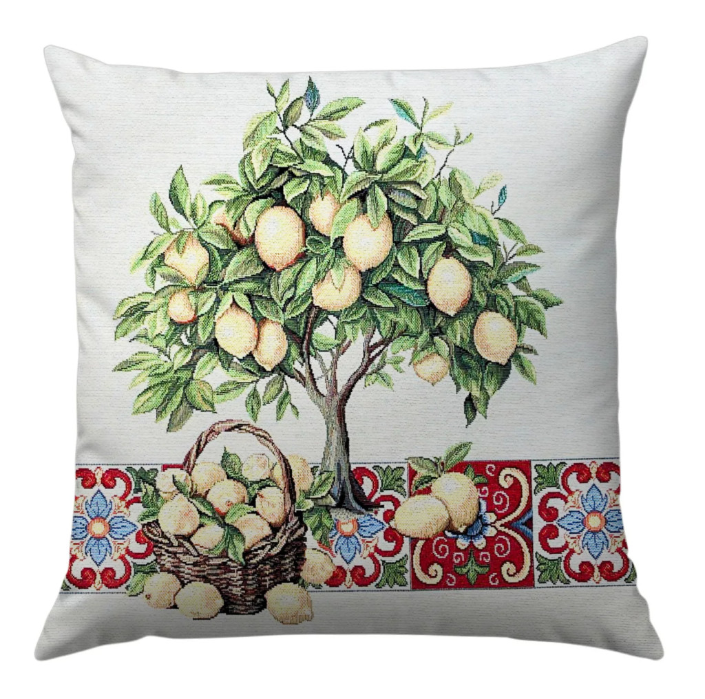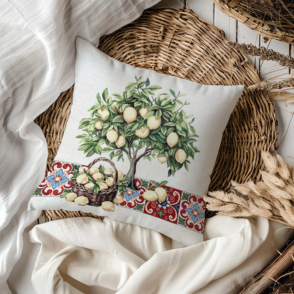 Keltsd életre a mediterrán nyár hangulatát otthonodban! A mintán sárga citromokkal teli fa és mediterrán piros csempe minta jelenik meg – igazi olaszos, vidéki stílusú kiegészítő.