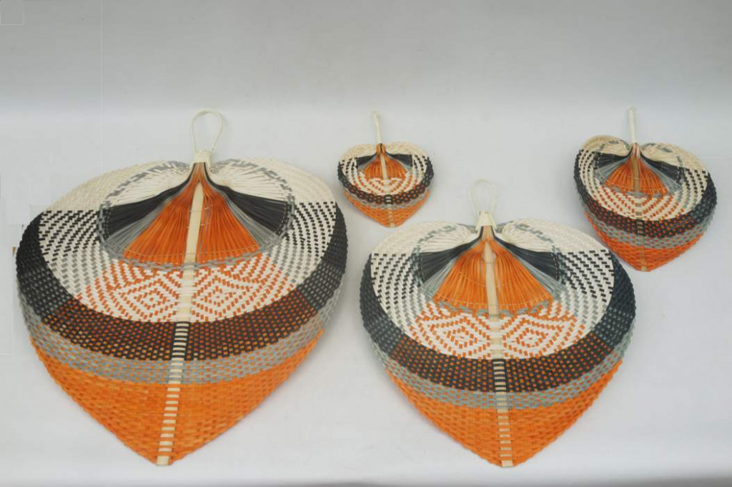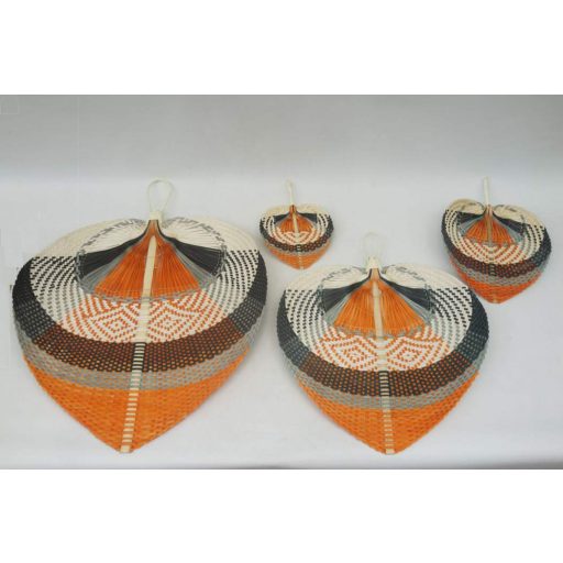 Fali dekoráció szett legyező bambusz 57x1x71 cm barna, bézs, fekete s/4