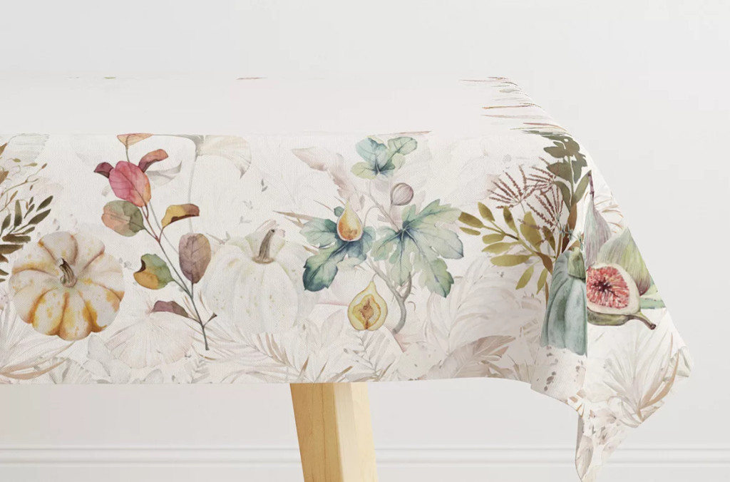Teremts varázslatos őszi hangulatot otthonodban ezzel a gyönyörű, őszi dekorációs asztalterítővel! A finoman megrajzolt, tökös és fügés motívumokkal díszített asztalterítő tökéletes választás lehet bármilyen alkalomra, legyen szó családi ebédről, vacsoráról vagy ünnepi eseményről. A természet inspirálta színvilág és a levelek harmóniája elegáns, mégis melegséget árasztó légkört teremt a konyhában vagy az étkezőben. Ideális választás őszi vagy téli dekorációhoz.