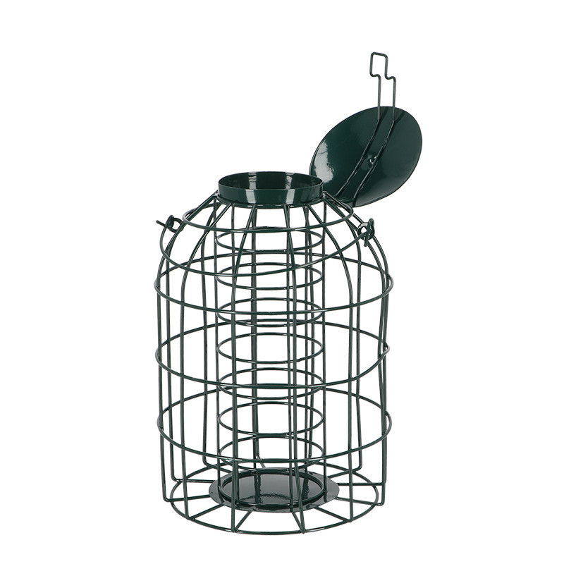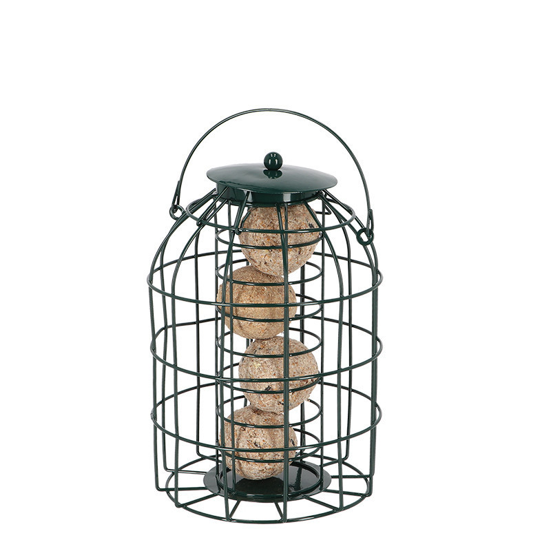 Faggyúgolyótartó fém madáretető, mókus elleni ráccsal, 16 x 22 cm