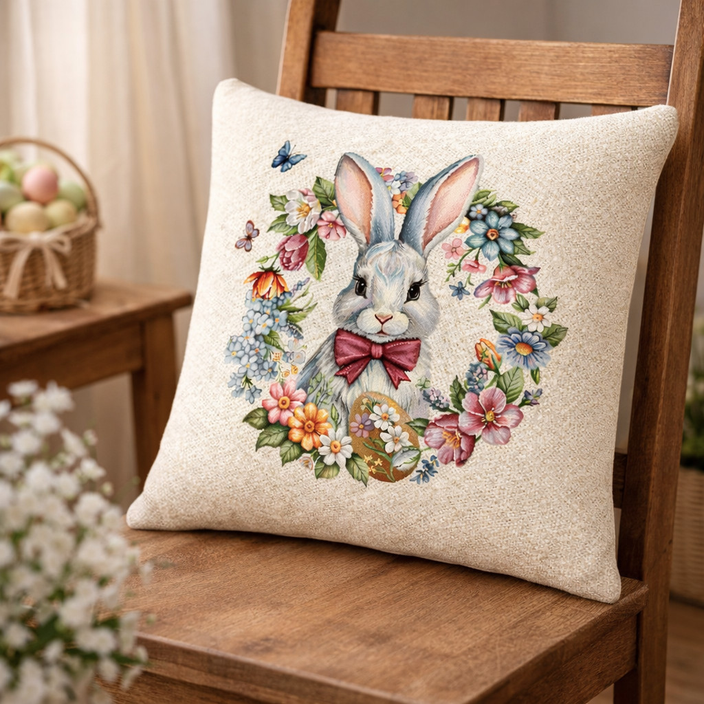 Gépi szövésű spanyol gobelin párnahuzat – nyuszi mintával