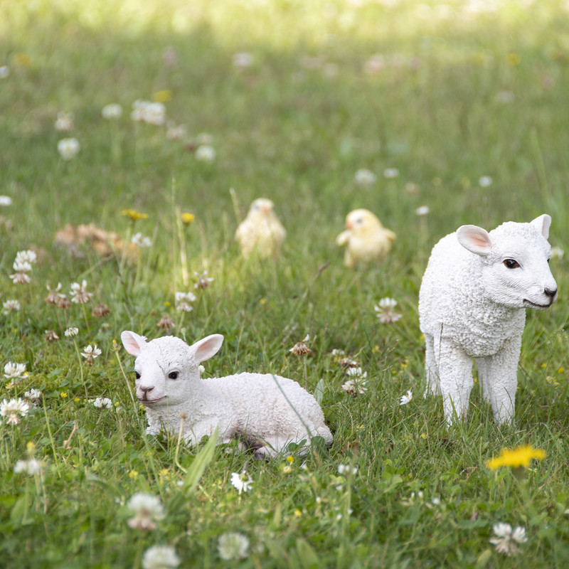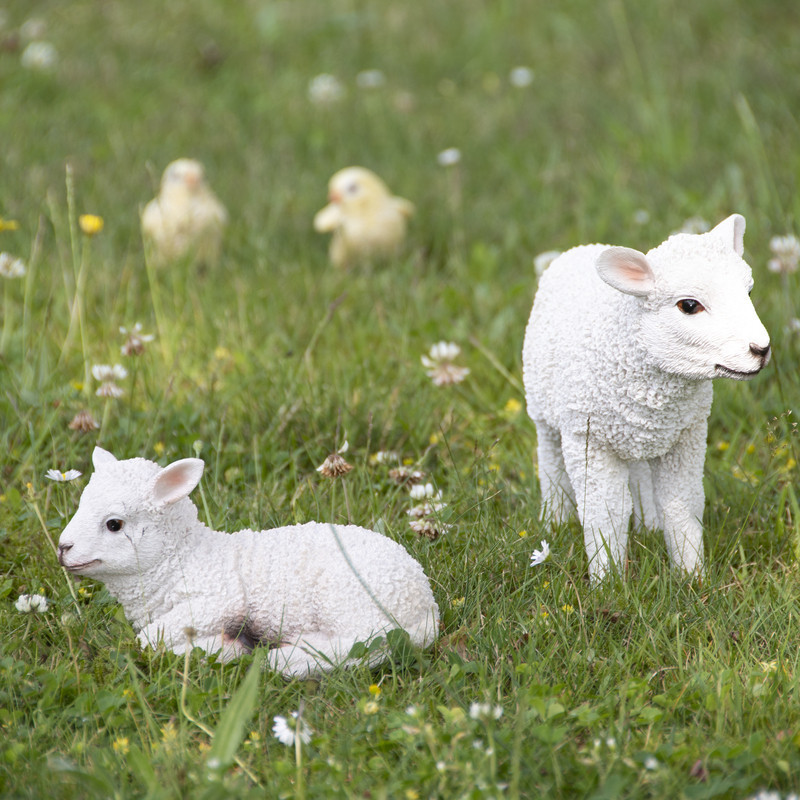 Fekvő bárány kerti polyresin szobor. A szobrok festése aprólékos munkával, egytől egyig kézzel történik, így a végeredmény a megszólalásig hasonlít az eredeti állathoz. A termék anyaga polyresin, amely ellenáll a téli fagyos időjárásnak is. Mindemelett UV álló így a nyári magas UV sugárzás sem tesz kárt a termékben. Kültéren és beltéren egyaránt használható dekorációs termék. A kert bármely részén vagy a bejáratnál is elhelyezhető, így fogadva a vendégeket.