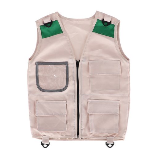 Felfedező mellény gyerekeknek. A praktikus zsebeknek köszönhetően mindent magukkal vihetnek a gyerekek, amire a természetjárás során szükség lehet. A karabíner akasztóval további kiegészítők akaszthatók a mellényre. Egy méretben kapható: 38 x 0,5 x 51 cm.