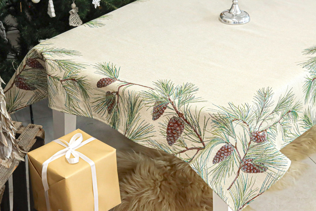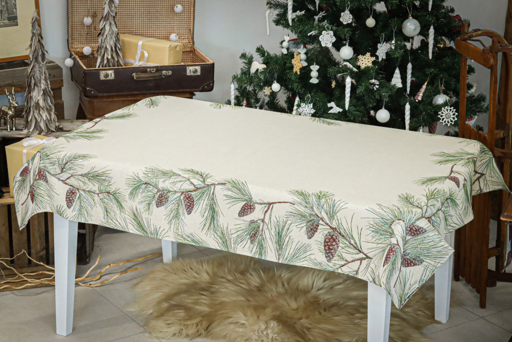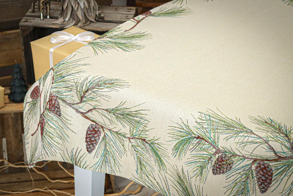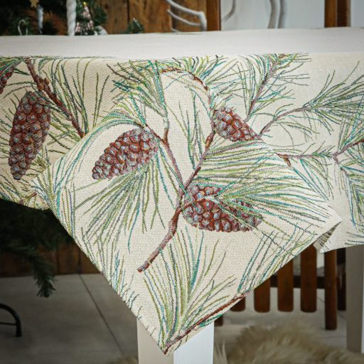 Fenyőerdő (tobozos) asztalterítő, 137x240 cm, ezüst lurex