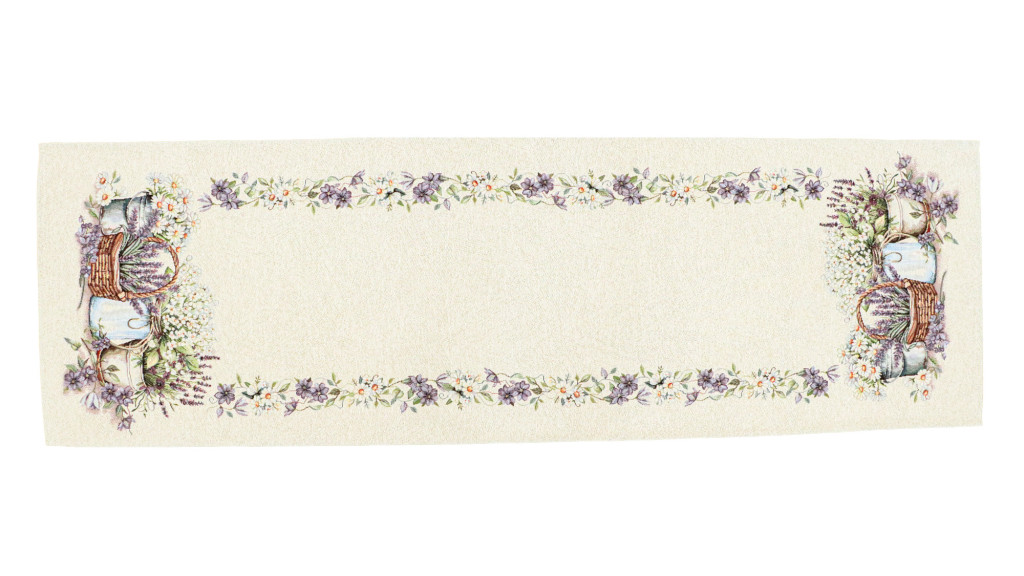 Dobd fel otthonod ezzel a csodálatos levendulás gépi gobelin asztali futóval, amely egy kis francia vidéki romantikát csempész az étkezőbe! A részletgazdag mintázat levendulacsokrokkal, virágokkal és vintage hangulatú kiegészítőkkel díszített, így tökéletes választás rusztikus vagy klasszikus stílusú enteriőrökbe.
