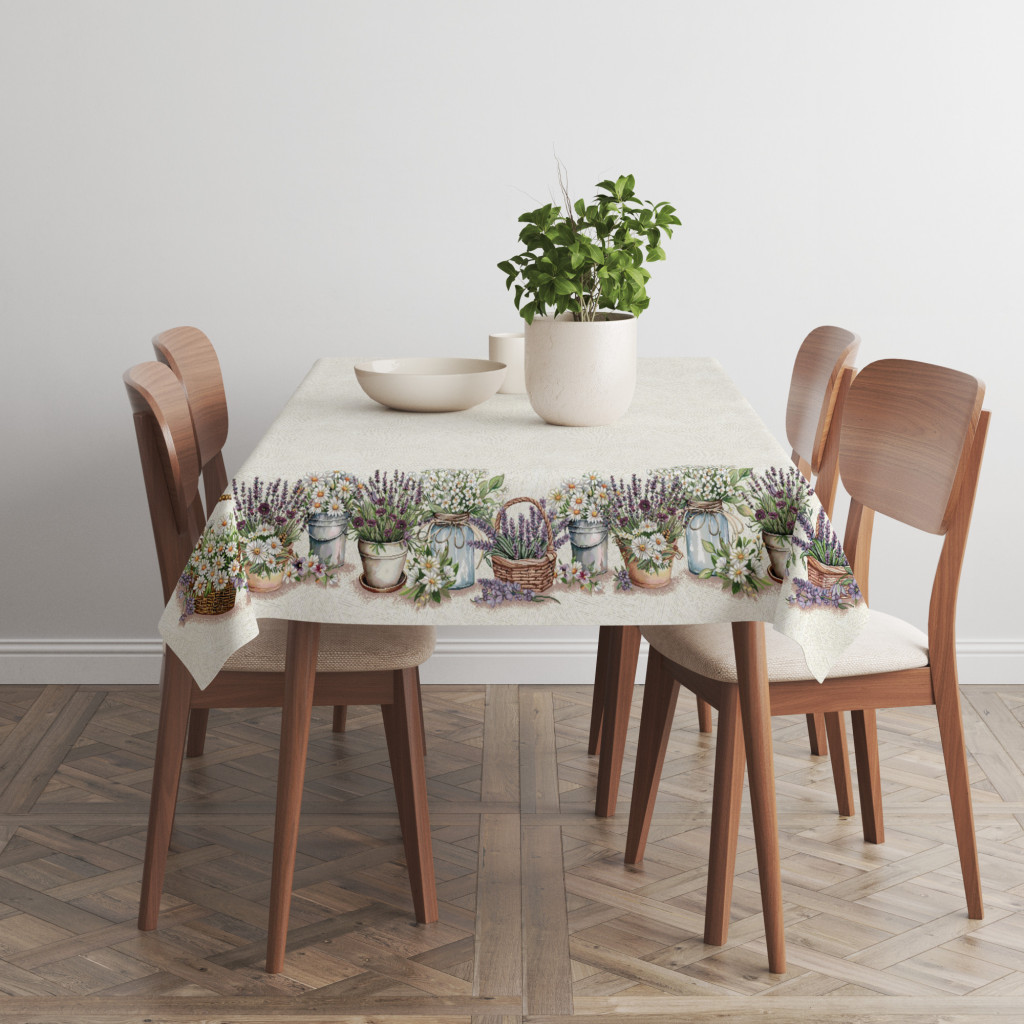 Dobd fel otthonod ezzel a csodálatos levendulás gépi gobelin asztalterítővel, amely egy kis francia vidéki romantikát csempész az étkezőbe! A részletgazdag mintázat levendulacsokrokkal, virágokkal és vintage hangulatú kiegészítőkkel díszített, így tökéletes választás rusztikus vagy klasszikus stílusú enteriőrökbe.