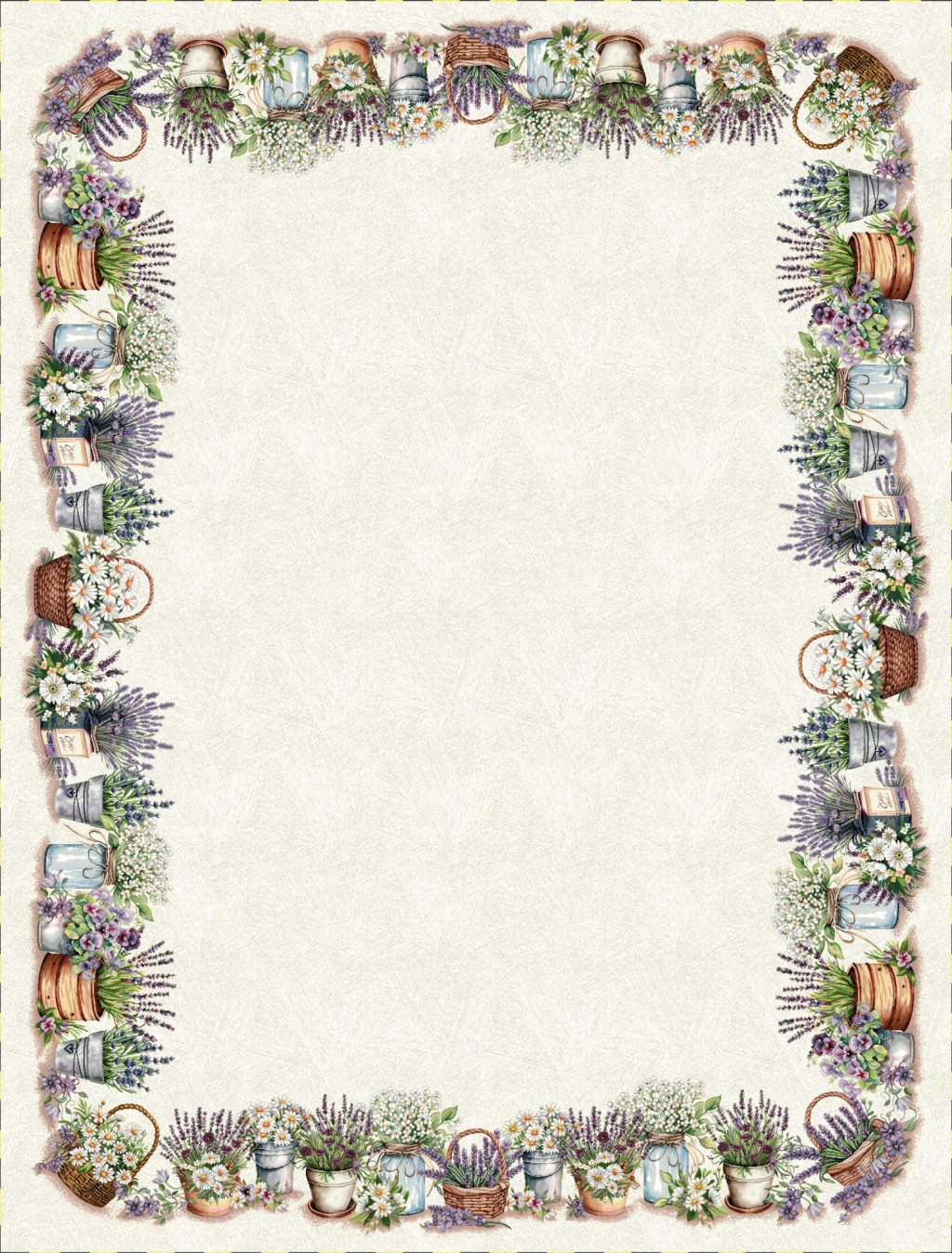 Elegáns és természetközeli dizájn – Levendulával, százszorszépekkel és vintage kosarakkal díszített minta