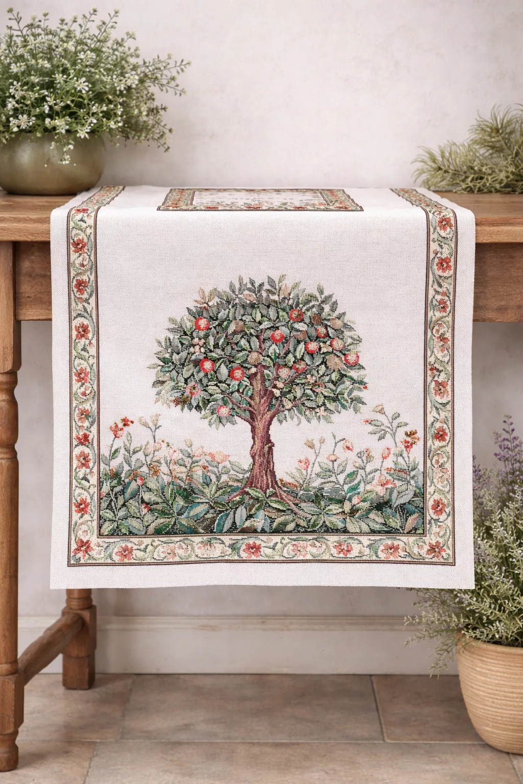 Gépi szövésű spanyol gobelin asztali futó – életfa motívummal