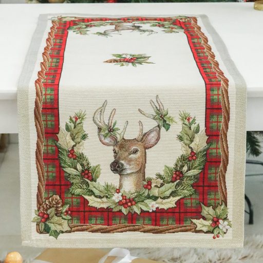 Harmony kollekciónk alapja skót kocka mintás, amely szarvas motívummal és koszorúkkal van dekorálva. Megfelelő kezelés mellett a karácsonyi asztali futó hosszú éveking megőrzi szépségét és minőségét. Prémium minőségű termék, amely pompásan mutat az ünnepi asztalon.