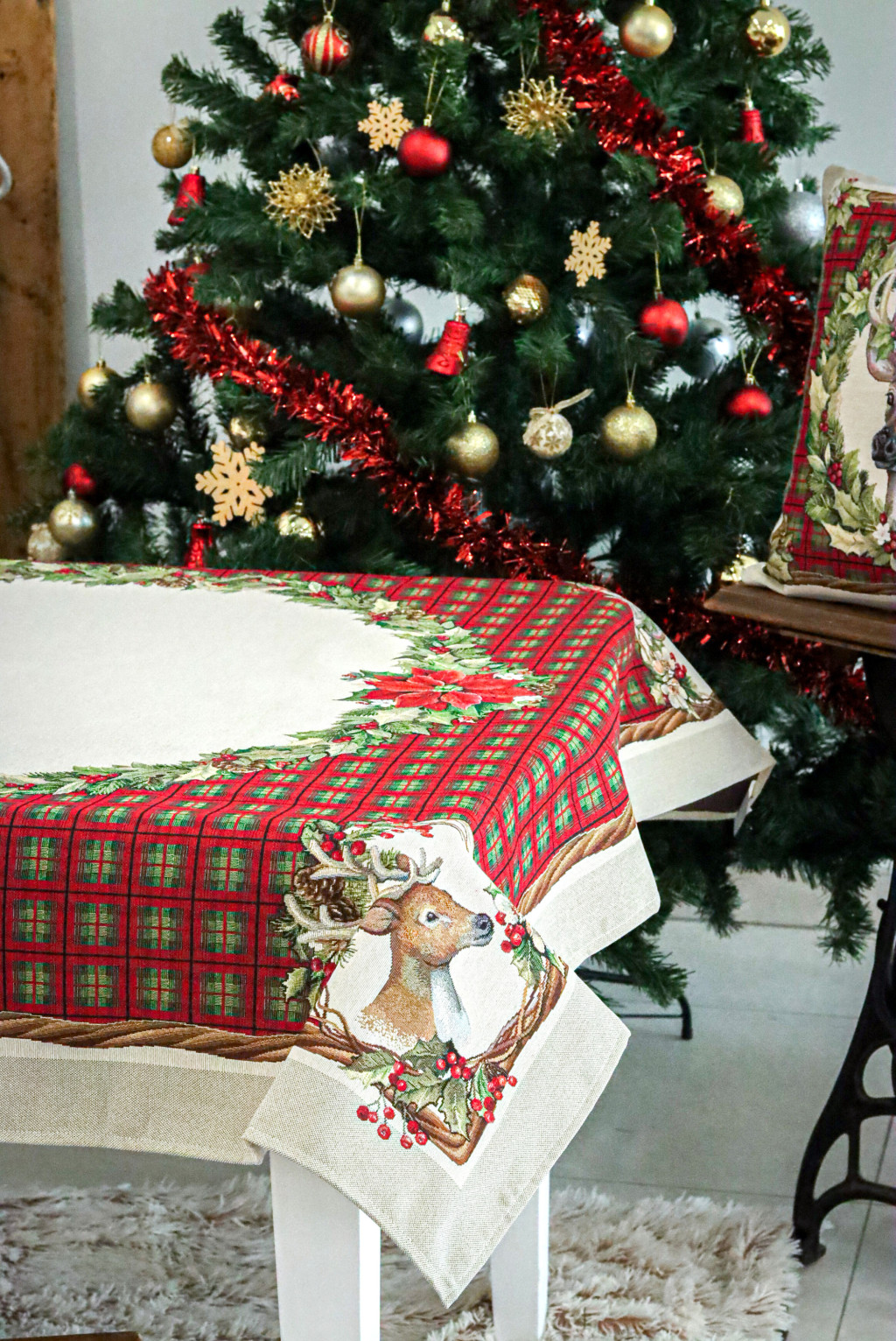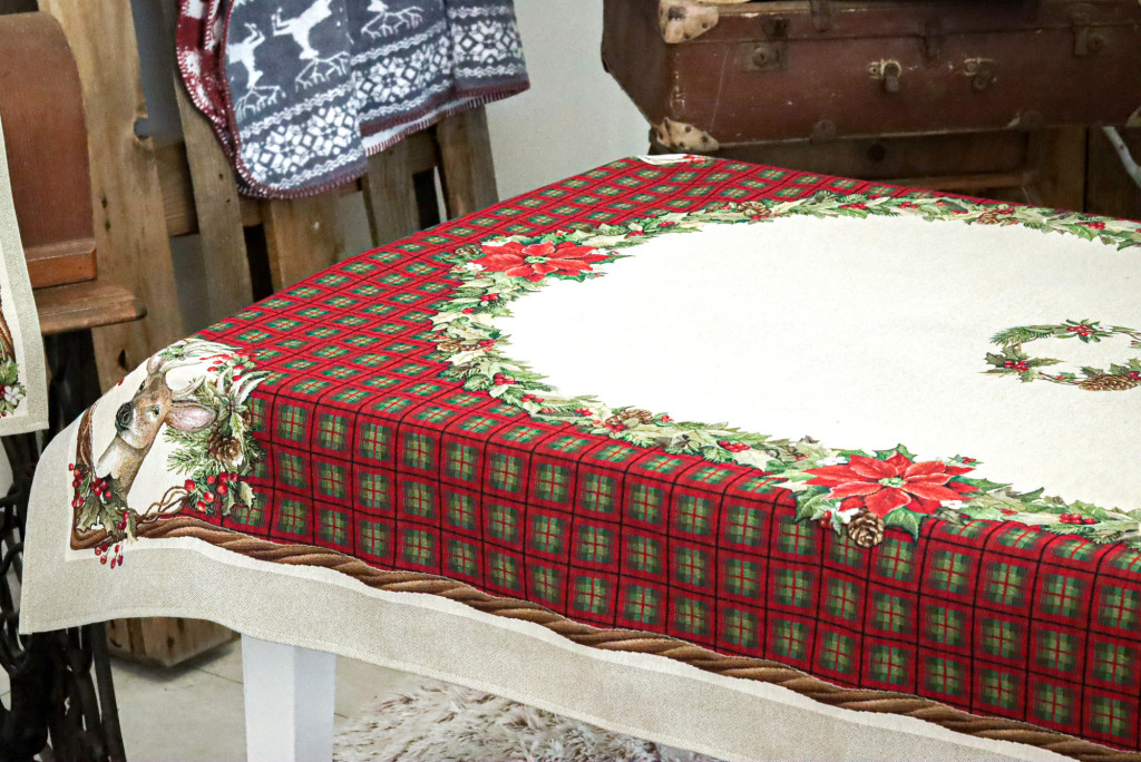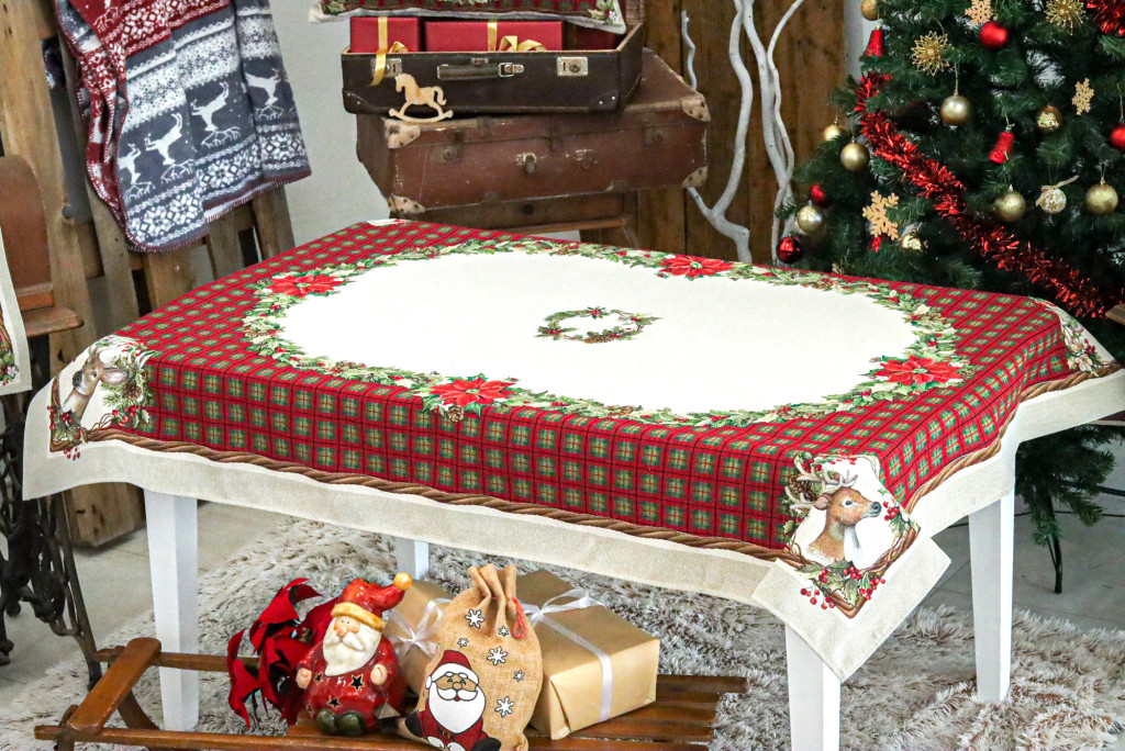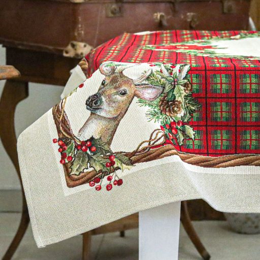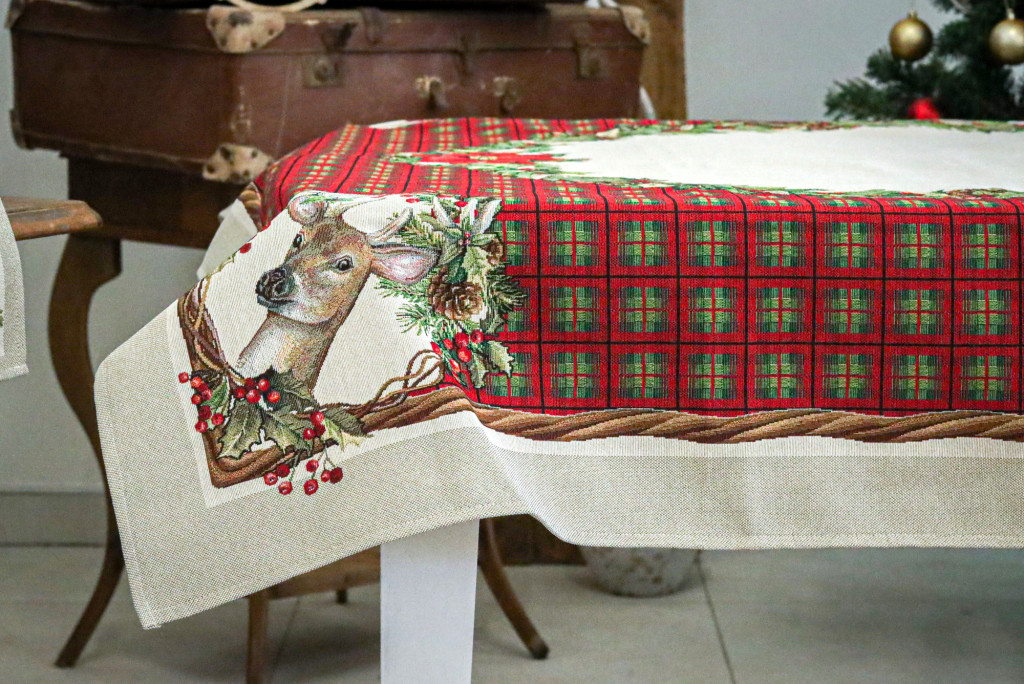 Harmony kollekciónk alapja skót kocka mintás, amely szarvas motívummal és koszorúkkal van dekorálva. Megfelelő kezelés mellett a karácsonyi asztalterítő hosszú éveking megőrzi szépségét és minőségét. Prémium minőségű termék, amely pompásan mutat az ünnepi asztalon.