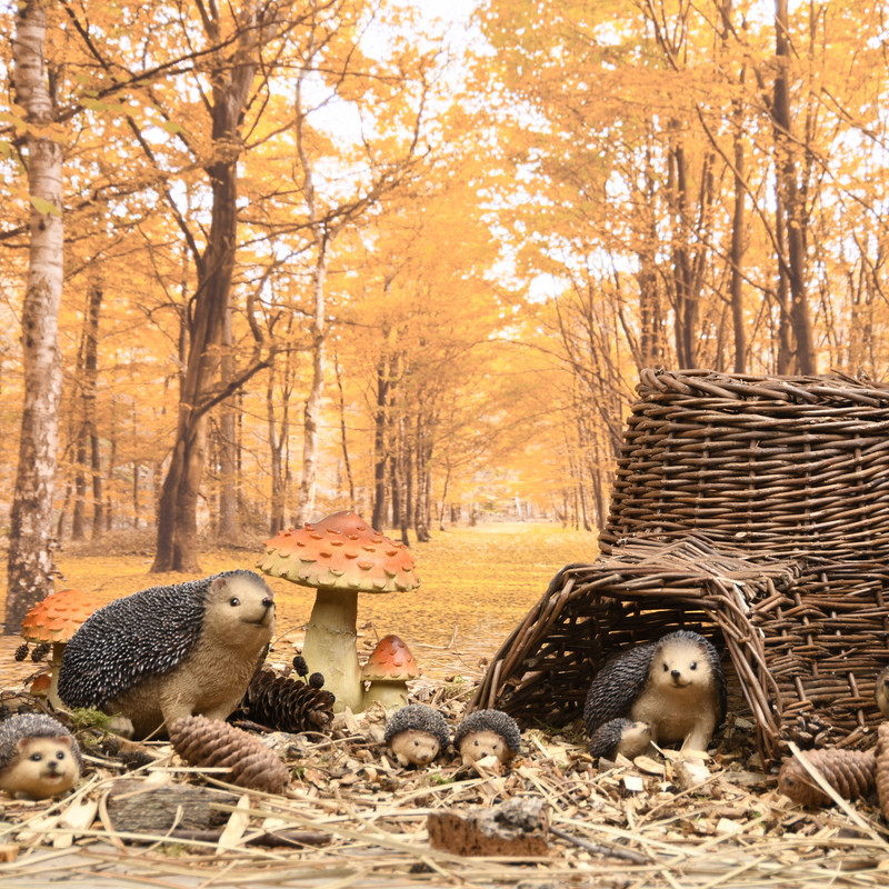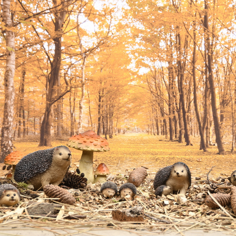 Háton fekvő süni polyresin szobor, kültéri és beltéri dekorációs kiegészítő