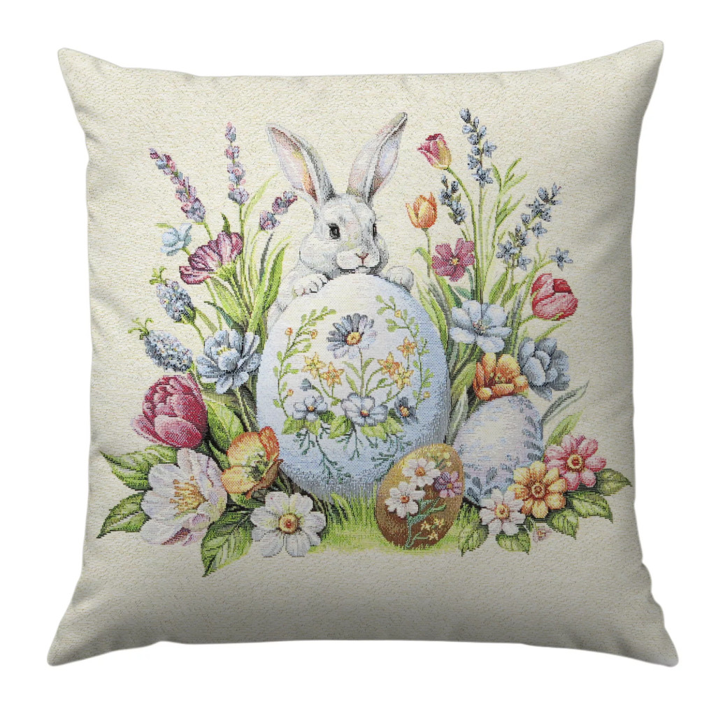 Vidám húsvéti díszpárna huzat, amelynek mindkét oldalán ugyanaz a minta található. Megfelelő kezelés mellett éveking megőrzi szépségét és minőségét. Lepd meg magad vagy szeretteidet egy prémium minőségű díszpárna huzattal!