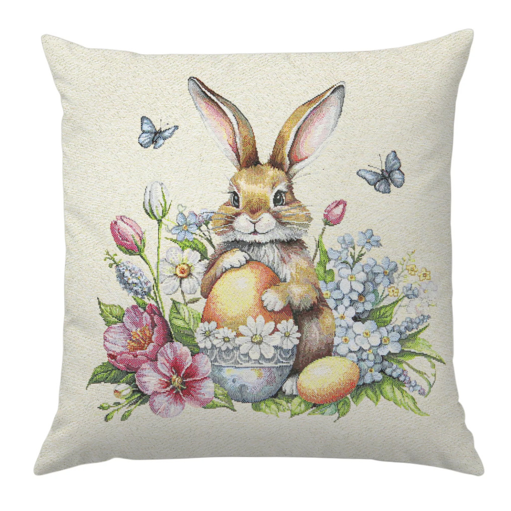 Vidám húsvéti díszpárna huzat, amelynek mindkét oldalán ugyanaz a minta található. Megfelelő kezelés mellett éveking megőrzi szépségét és minőségét. Lepd meg magad vagy szeretteidet egy prémium minőségű díszpárna huzattal!