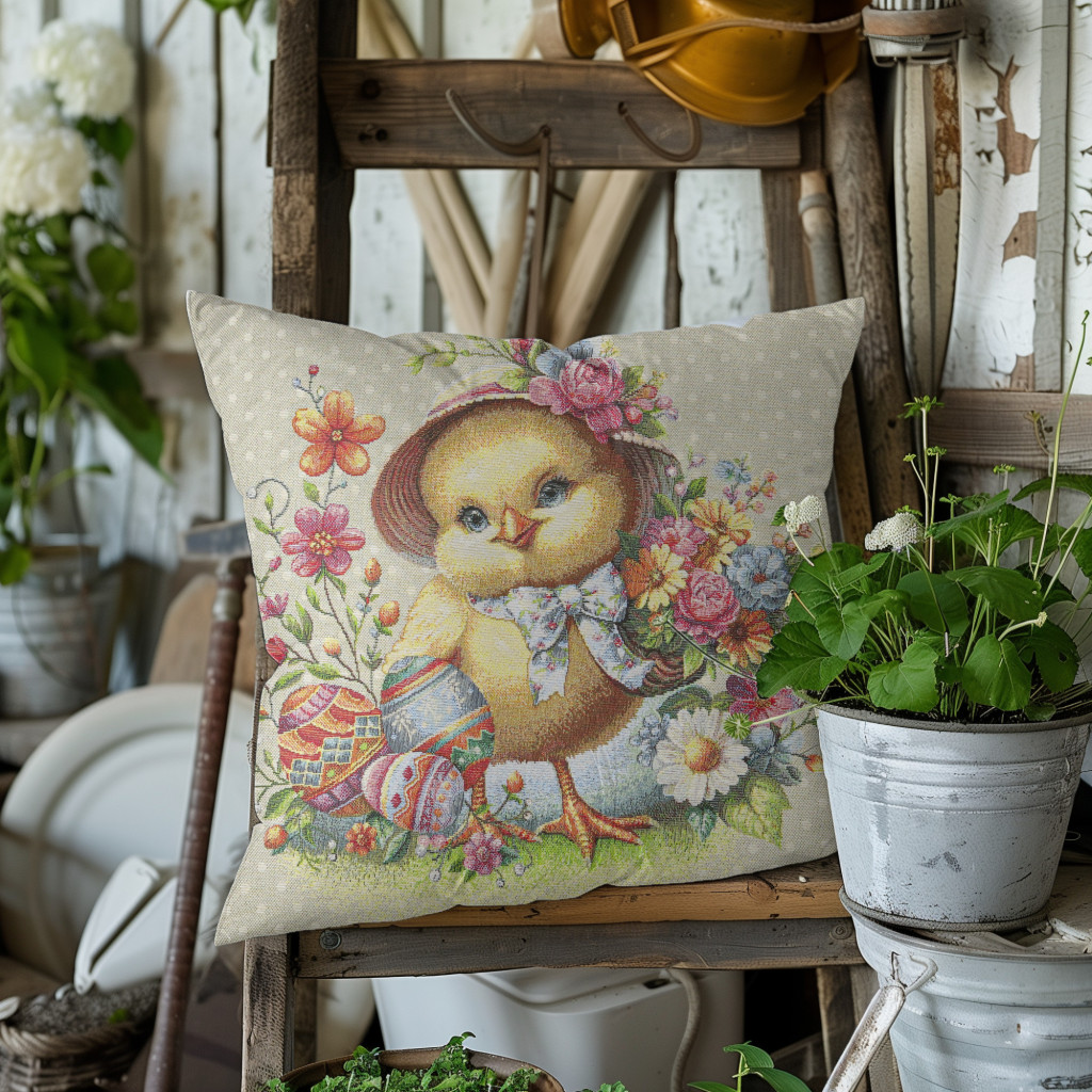 Húsvéti kiscsibés (kalapos) díszpárna huzat