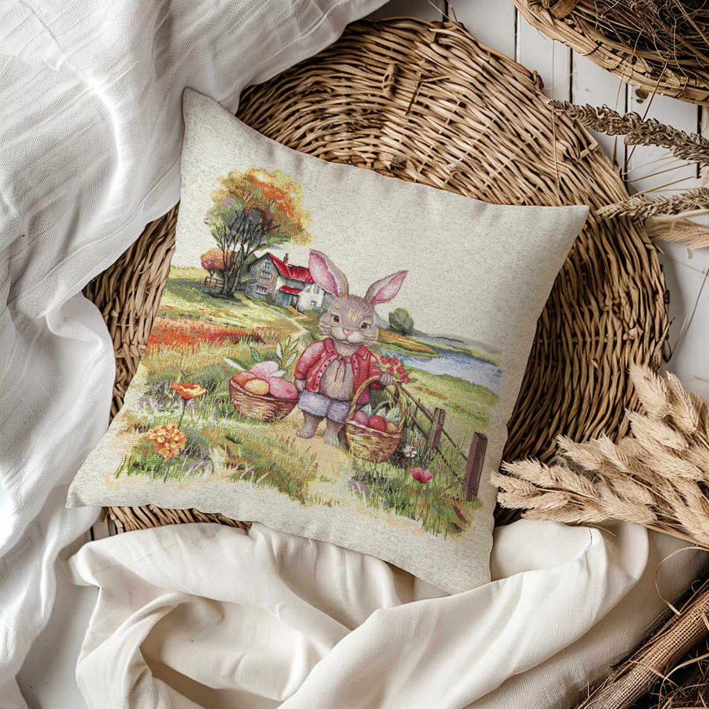 Vidám húsvéti nyuszis díszpárna huzat, amelynek mindkét oldalán ugyanaz a minta található. Megfelelő kezelés mellett éveking megőrzi szépségét és minőségét. Lepd meg magad vagy szeretteidet egy prémium minőségű díszpárna huzattal!