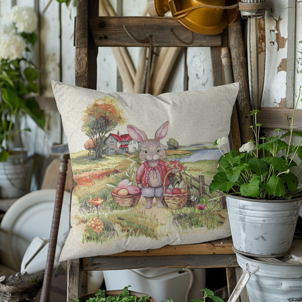 Vidám húsvéti nyuszis díszpárna huzat, amelynek mindkét oldalán ugyanaz a minta található. Megfelelő kezelés mellett éveking megőrzi szépségét és minőségét. Lepd meg magad vagy szeretteidet egy prémium minőségű díszpárna huzattal!