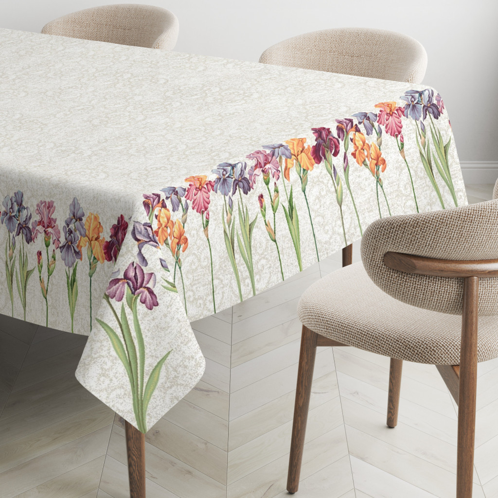 Spanyol gobelin asztalterítő – Színpompás íriszek és szegfűk