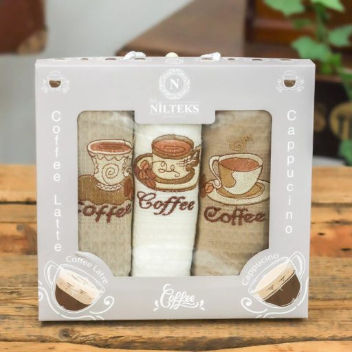KÁVÉS KONYHARUHA SZETT DÍSZDOBOZBAN, 3 DB-OS, 40X60 CM