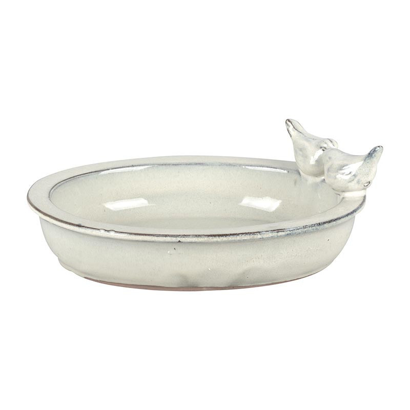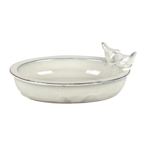 Kerámia madáretető és -itató tál, törtfehér
