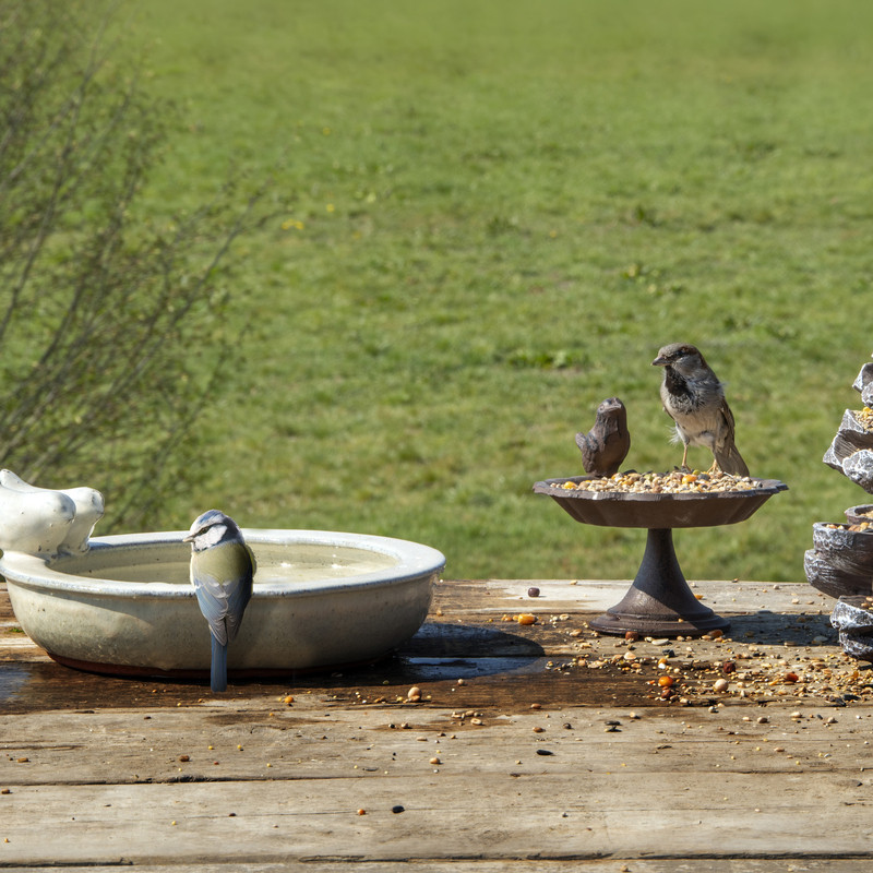 Kerámia madáretető és itató tál, törtfehér