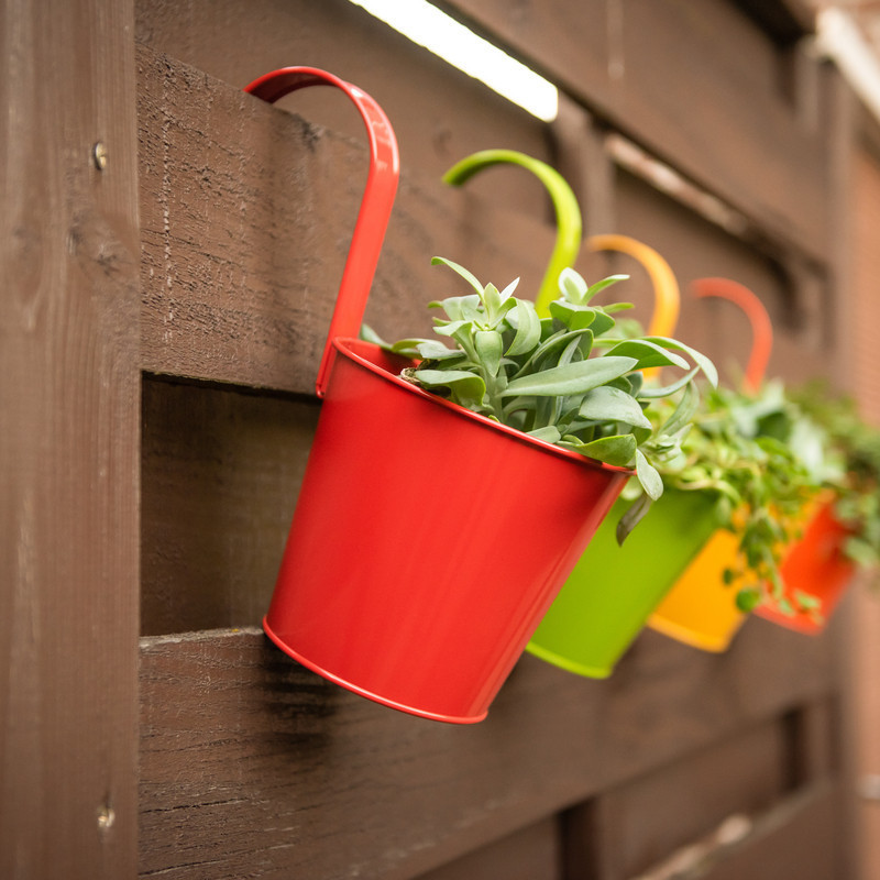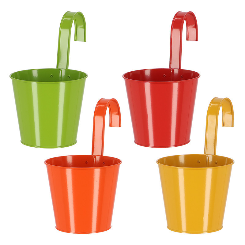Korlátra akasztható kampós virágcserép, 16 cm átmérőjű, narancssárga