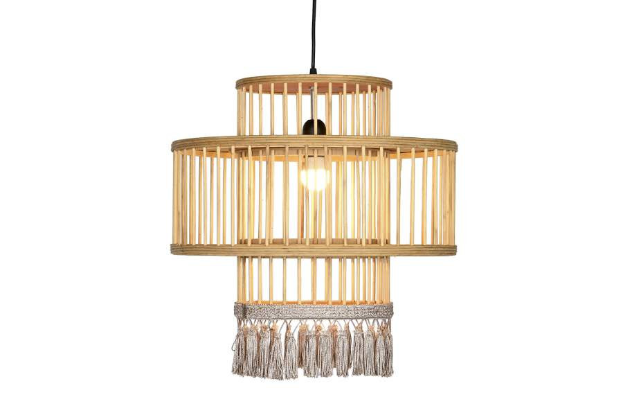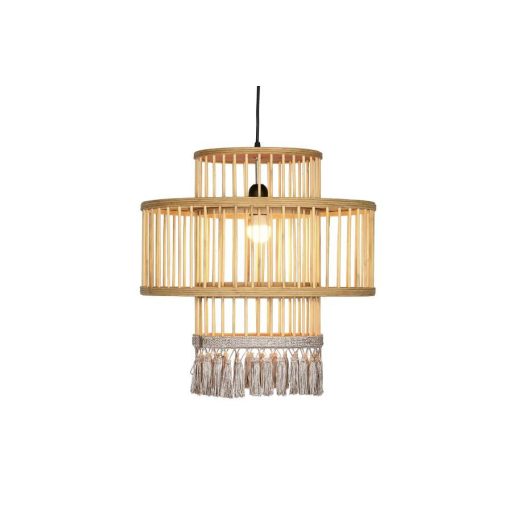Lámpa mennyezeti rattan 45x45x46 bojtos természetes barna