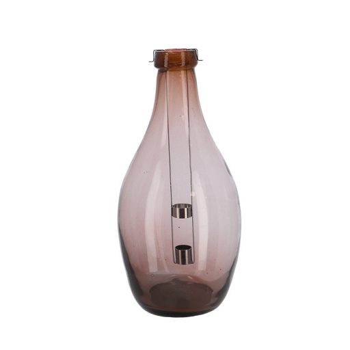 Lámpás újrahasznosított üvegből, kivehető gyertyatartóval, A változat, 38 cm magas. Stílusos lakberendezési kiegészítő, mellyel azonnal különleges atmoszférát teremthetünk otthonunkban. A finoman színezett üvegpalackban pislákoló gyertyafény azonnal otthonos hangulatot varázsol minden helyiségben. A gyertyát a kivehető fém gyertyatartóba kényelmesen belehelyezhetjük, majd meggyújthatjuk. A gyertyaláng a gyertyát az üvegebe visszahelyezve szélben sem alszik el. A biztonságról és a gyertya stabilitásáról plusz rögzítőgyűrű gondoskodik. Tippünk: kombináljuk a különböző magasságú, formájú és színű üveglámpásokat bátran egymással!