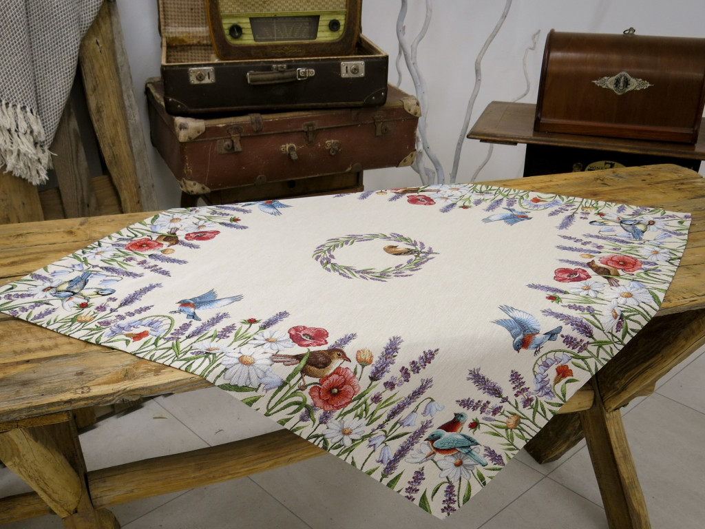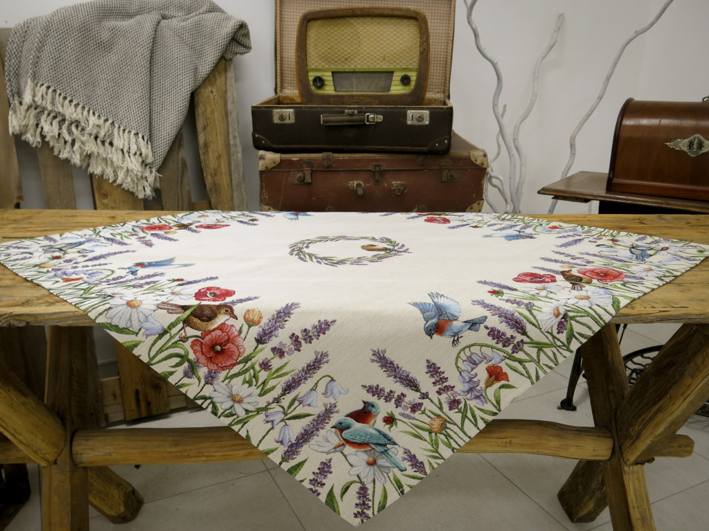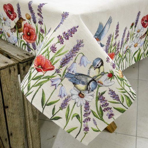 Madarakkal és színes virágokkal díszített asztalterítő. Különleges kiegészítő, amely minden tekintetet az asztalra vonz. Lepd meg magad vagy szeretteidet egy prémium minőségű asztalterítővel!