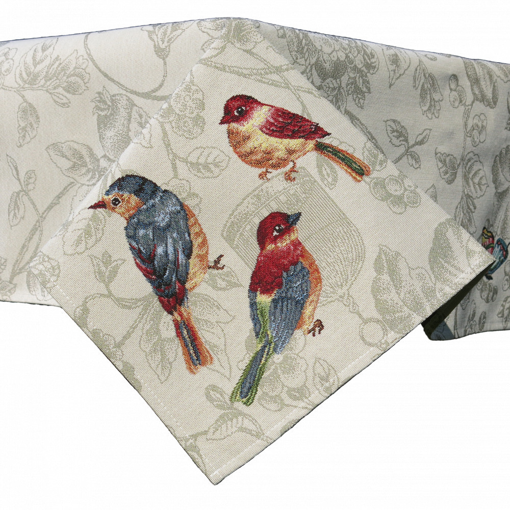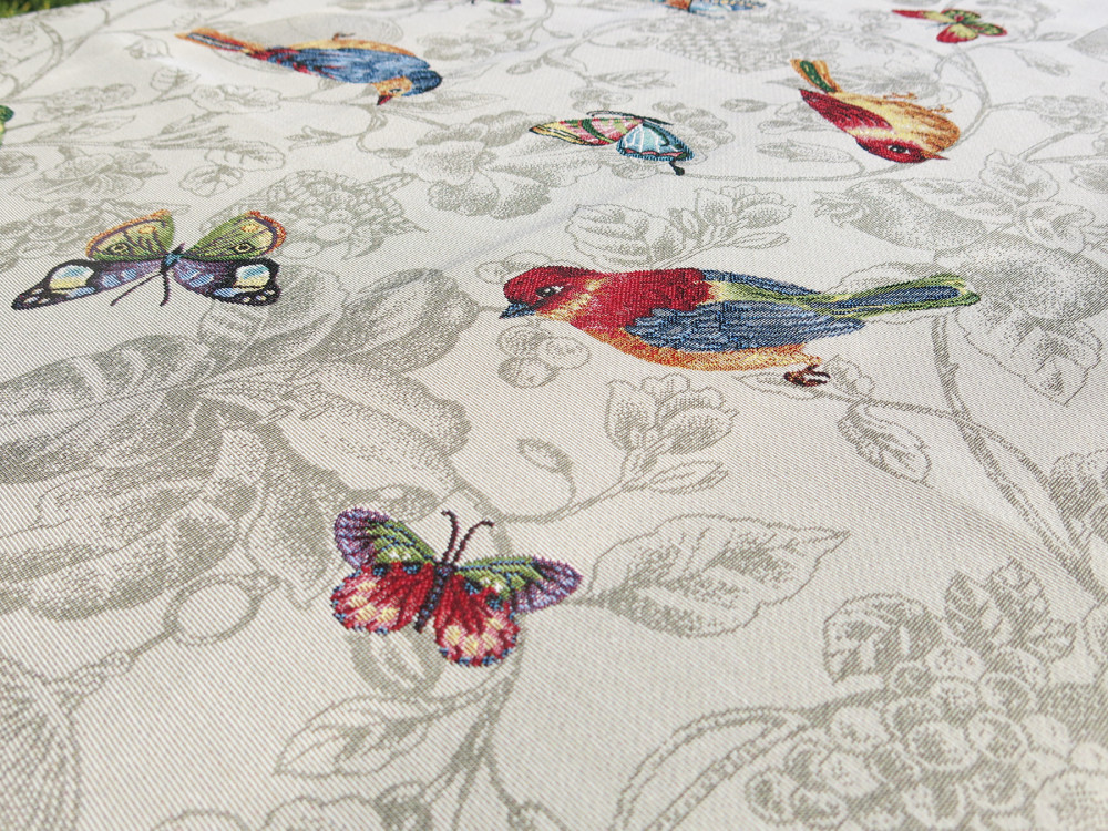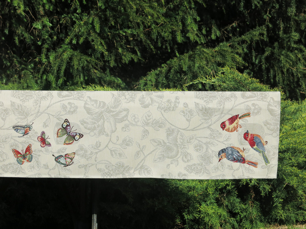 Madaras és pillangós mintákkal dekorált, mediterrán hangulatú asztali futó. Egyedülálló szépsége minden tekintetet az asztalra vonz. Lepd meg magad vagy szeretteidet egy prémium minőségű asztalterítővel!