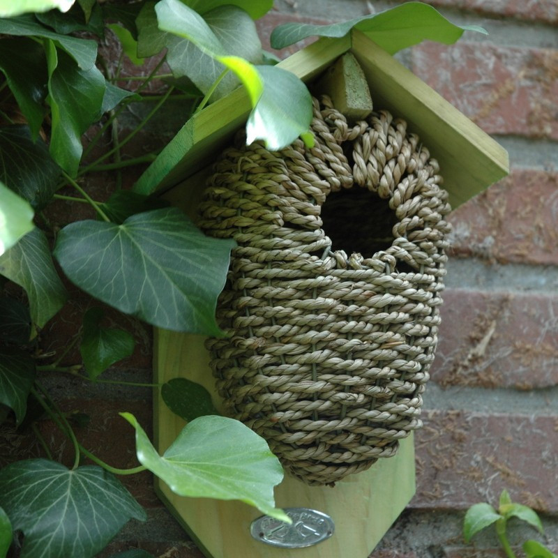 Tengeri fűből és fából készült madárház, amely búvóhelyet és fedezéket ad a kert madarainak. Esősebb időben a tető védelmet nyújt, a tengeri fű bejáraton az állatok kényelmesen megkapaszkodhatnak. Helyezzük el nyáron egy hűvösebb, árnyékos részen vagy télen a kert bármely pontján, a madarak pedig gyönyörű csicsergéssel hálálják meg a gondoskodást.
