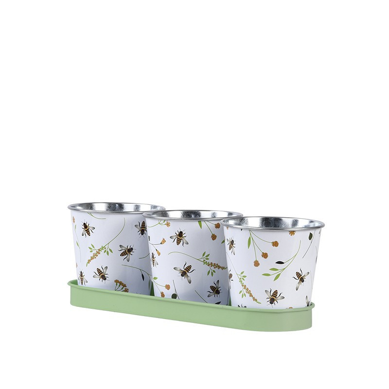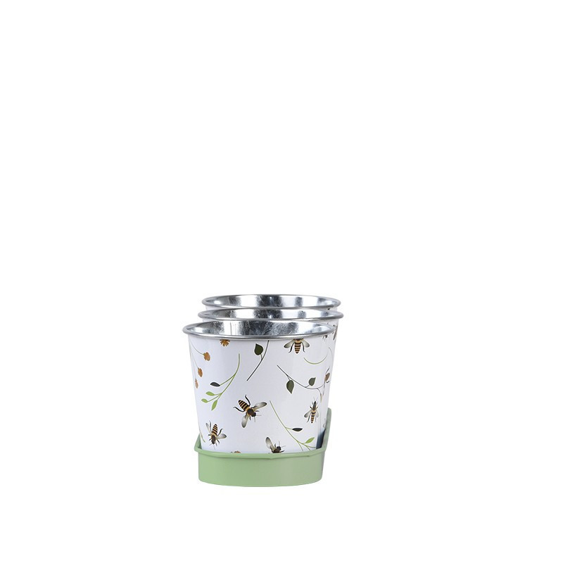 Méhecske mintás fém virágkaspó szett, alátéttel