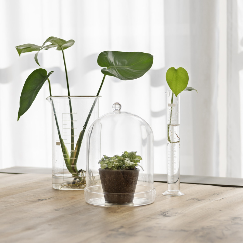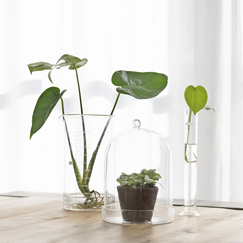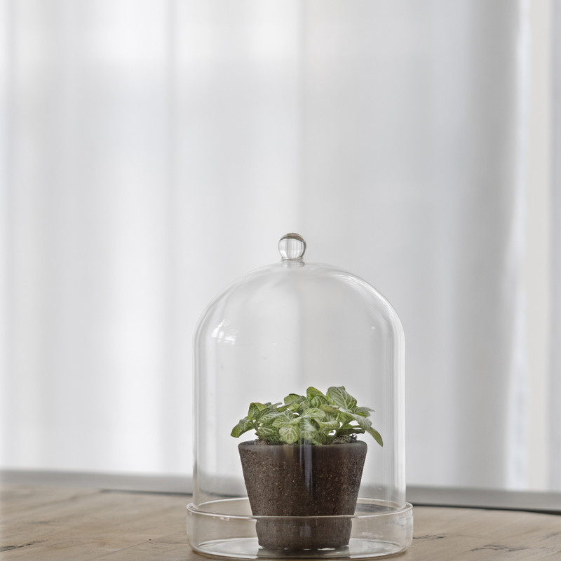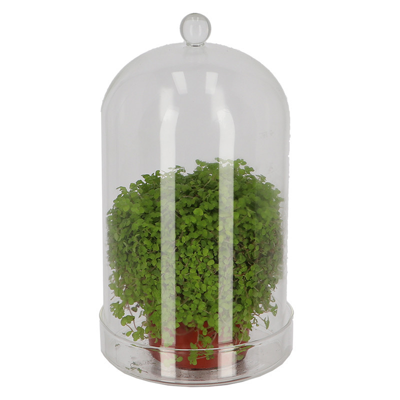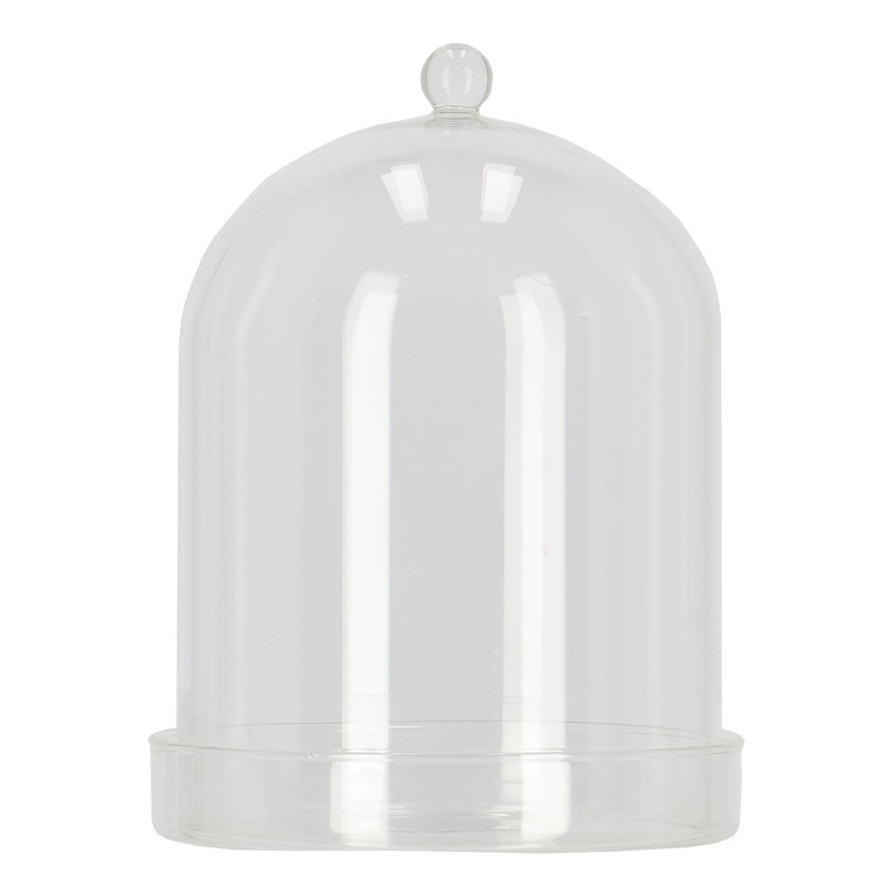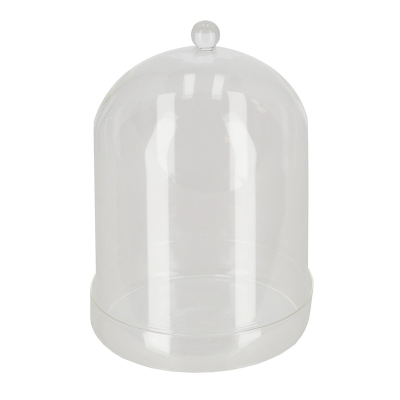 Dekorációs üveg búra, alappal, 16,3 cm átmérőjű