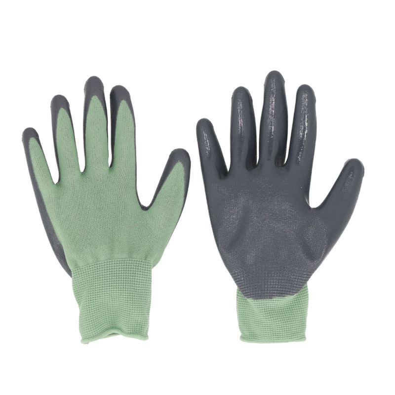 Nitrillel mártott kertész kesztyű, 3 db-os, zöld, 24,5 cm. Kertészkedés közben érdemes védeni a kezeket a különböző sérülésektől is, hiszen a vágások a munkálatok során könnyen beszennyeződhetnek. A kesztyű elasztikus, rugalmas anyagból készült, így mindenki számára kényelmes viseletet nyújt. A szűk szárrész gondoskodik arról, hogy ne jusson homok a kesztyű belső részébe. Ezek a kerti kesztyűk nitril bevonattal rendelkeznek az extra védelem és a kényelmes fogás érdekében. Alkalmas mindenféle kerti munkához. Mérete: 12,1 x 1 x 24,5 cm.