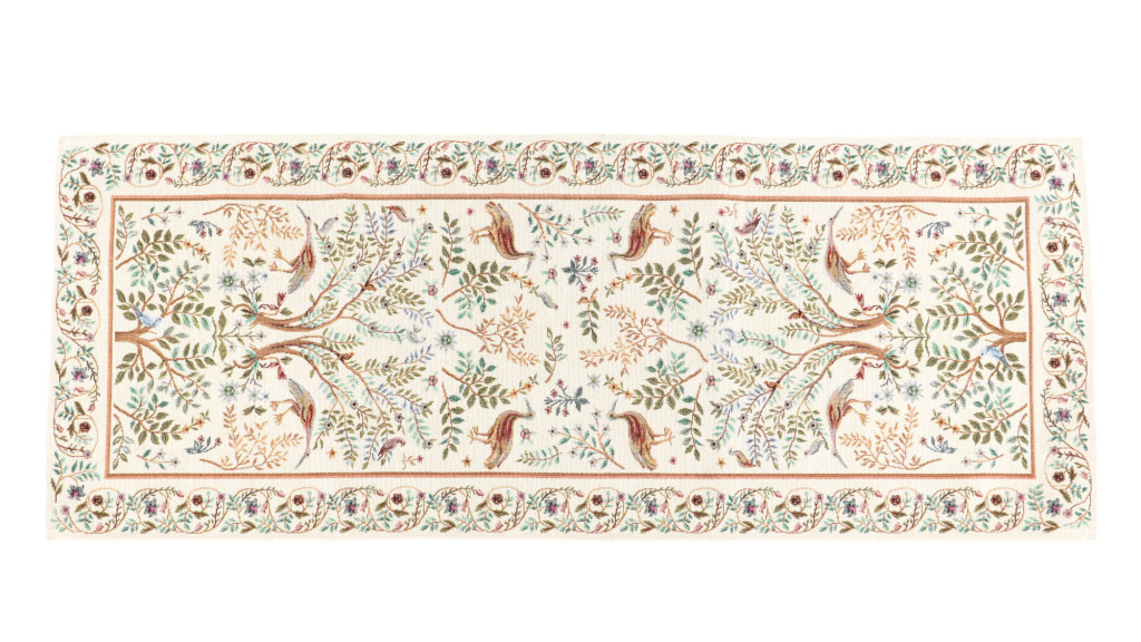 Elegáns, gépi szövésű gobelin terítő Spanyolországból, gazdag részletességű erdei madaras mintával. Igényes dísze étkezőnek vagy nappalinak. A klasszikus erdei jelenetek – madarak, szarvasok és indázó ágak – William Morris művészetét ábrázolják, harmonikusan illeszkednek rusztikus, vintage vagy klasszikus enteriőrbe is.