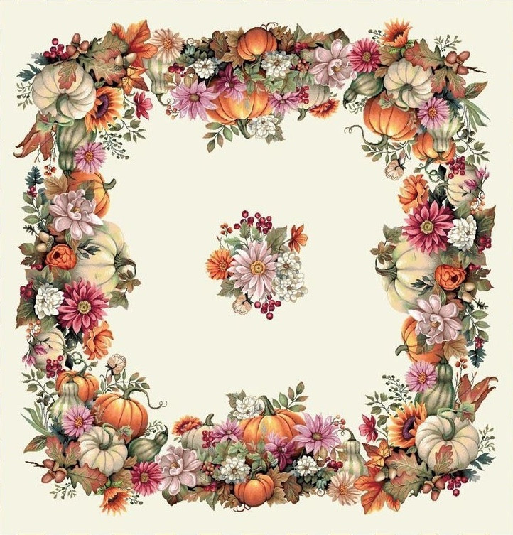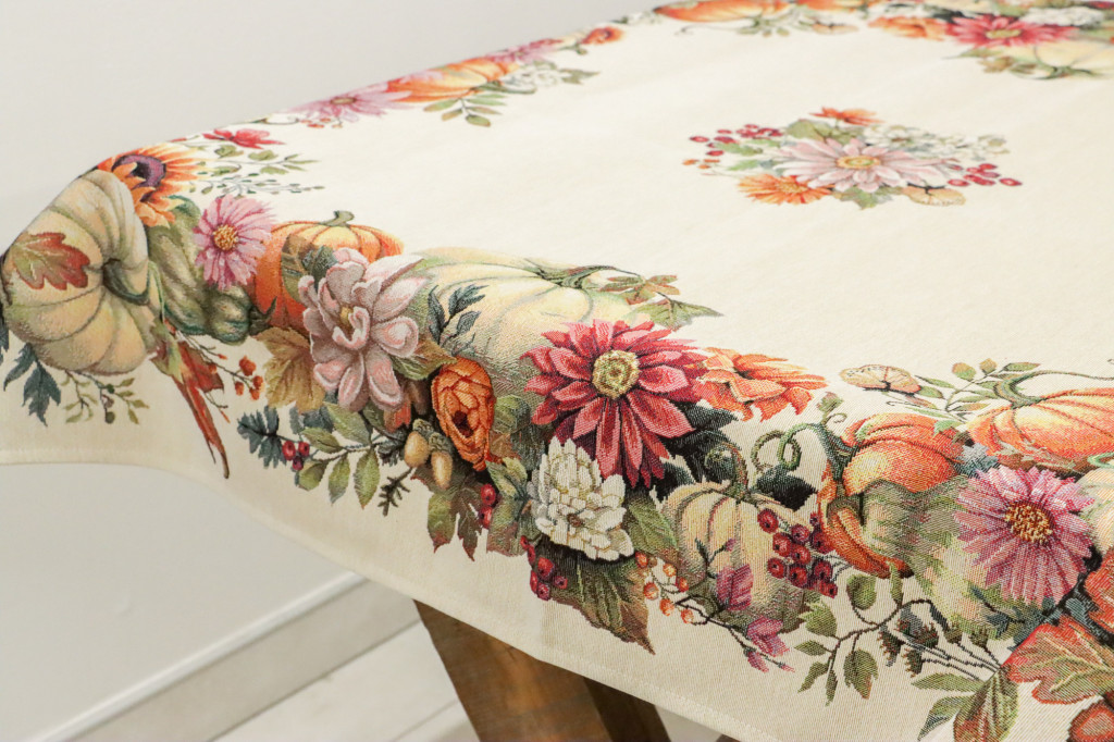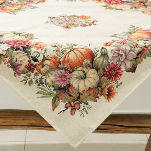 Őszi tökös, virágos asztalterítő, 96x100 cm