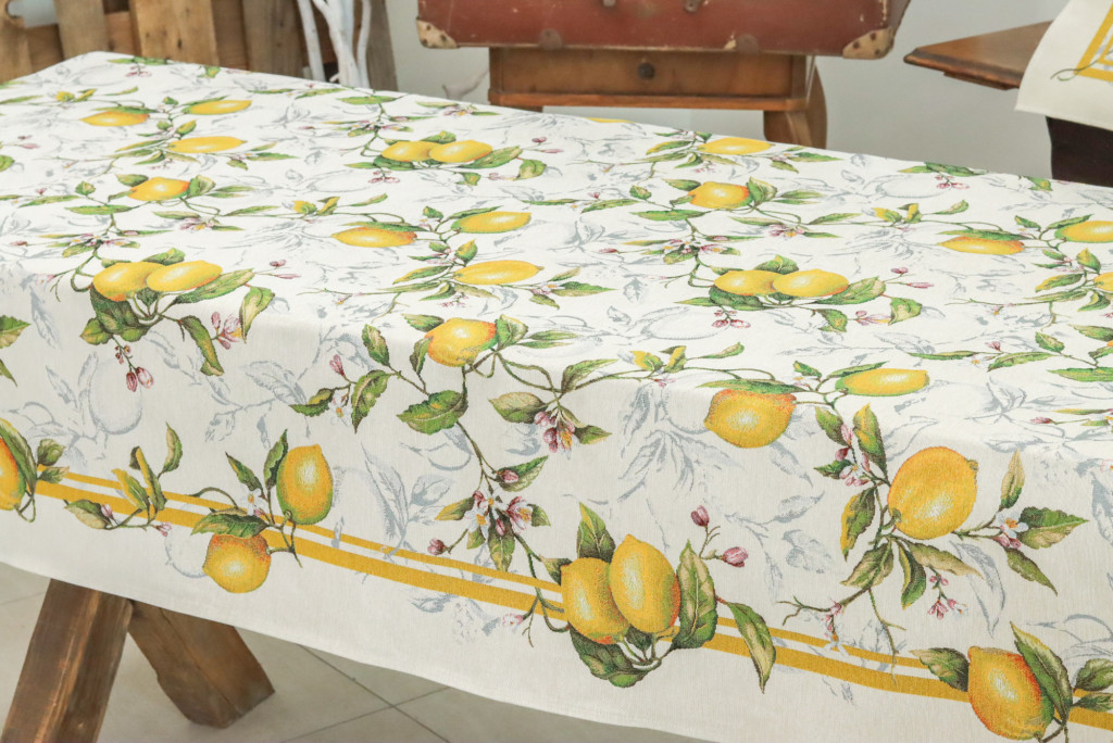 Igazi olasz hangulatot idéző, mediterrán asztalterítő. Egyedülálló szépsége minden tekintetet az asztalra vonz. Lepd meg magad vagy szeretteidet egy prémium minőségű asztalterítővel!
