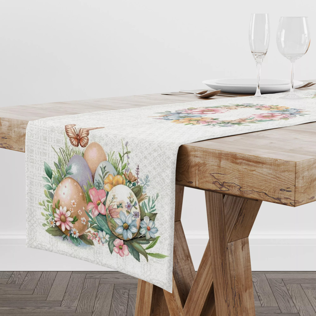 Vastag, tartós és formatartó gobelin anyaga szépen simul az asztalra, nem gyűrődik, és hosszú ideig megőrzi élénk színeit. Ideális választás ünnepi vendégváráshoz, húsvéti asztalterítéshez vagy tavaszi lakásdekorációhoz – komódra, étkezőasztalra vagy dohányzóasztalra is tökéletes.