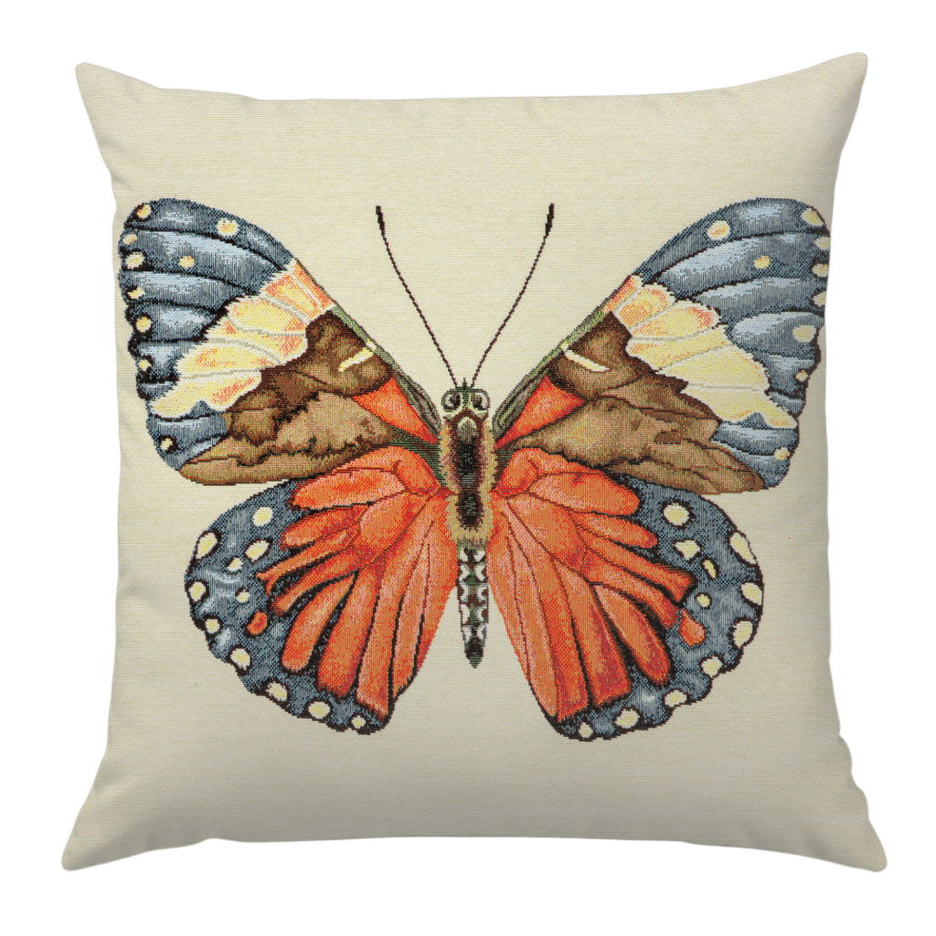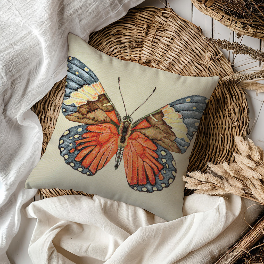 Pillangós, prémium minőségű díszpárna huzat kétoldalas mintával. Cipzár a huzat alján található, anyaga vastag gépi gobelin szövet.