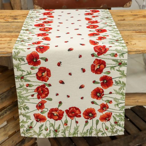 Gyönyörű pipacs virágokkal díszített asztali futó. Lepd meg magad vagy szeretteidet egy prémium minőségű asztalterítővel!