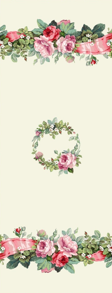 Romantikus stílusú, spanyol gépi gobelin asztali futó rózsás és szalagos mintával. Elegáns dísze étkezőnek, kávézóasztalnak vagy ünnepi terítésnek.