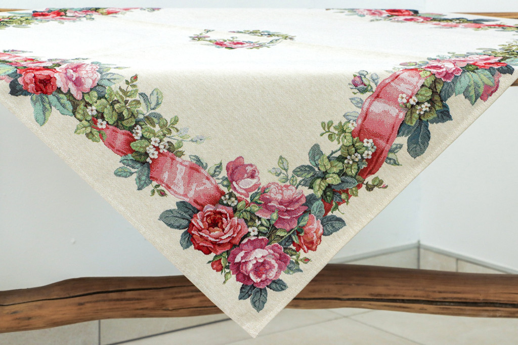 Rózsakert szalaggal asztalterítő, 96x100 cm