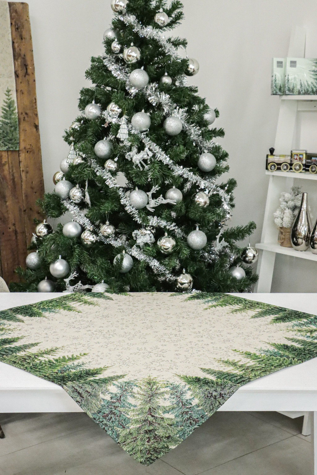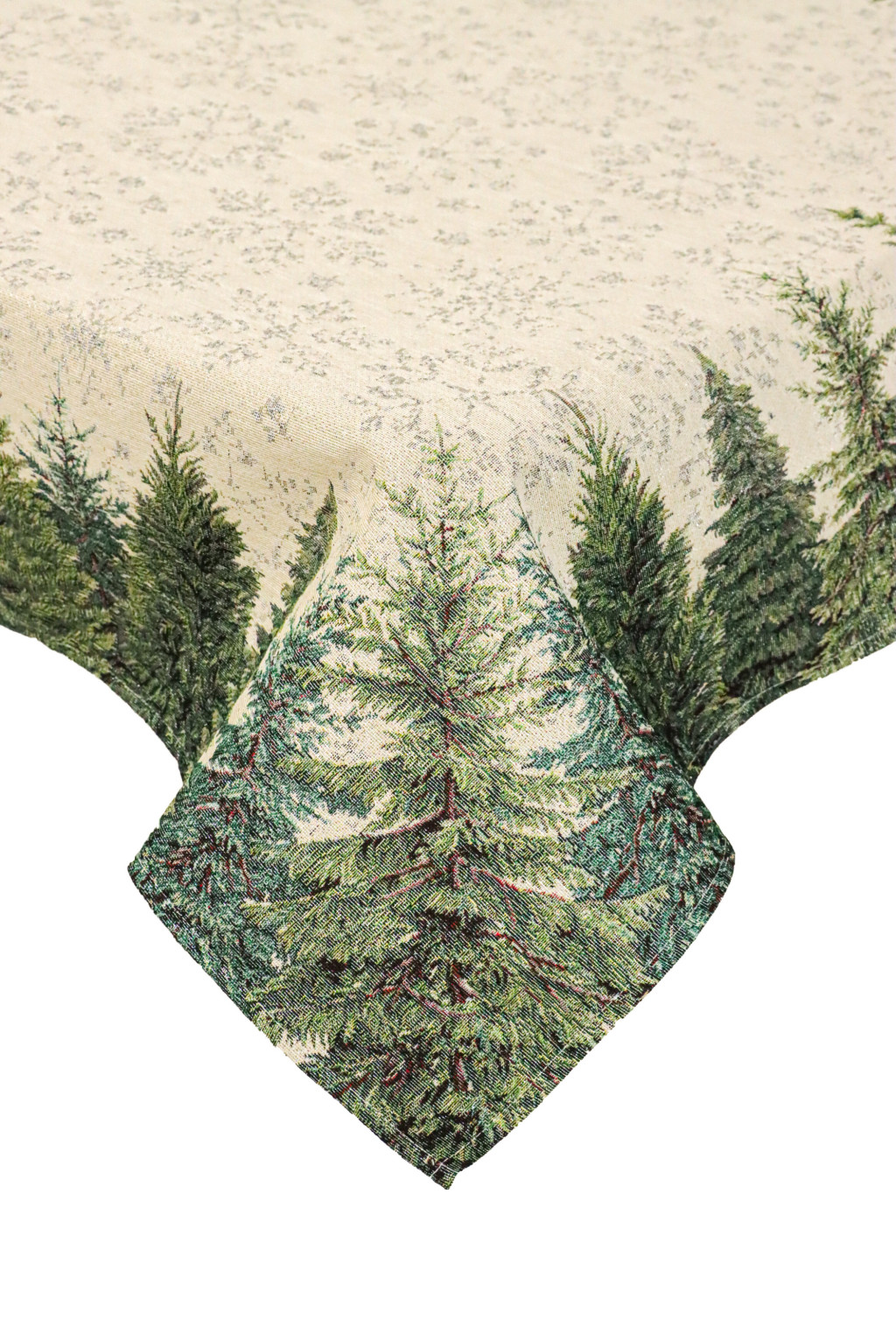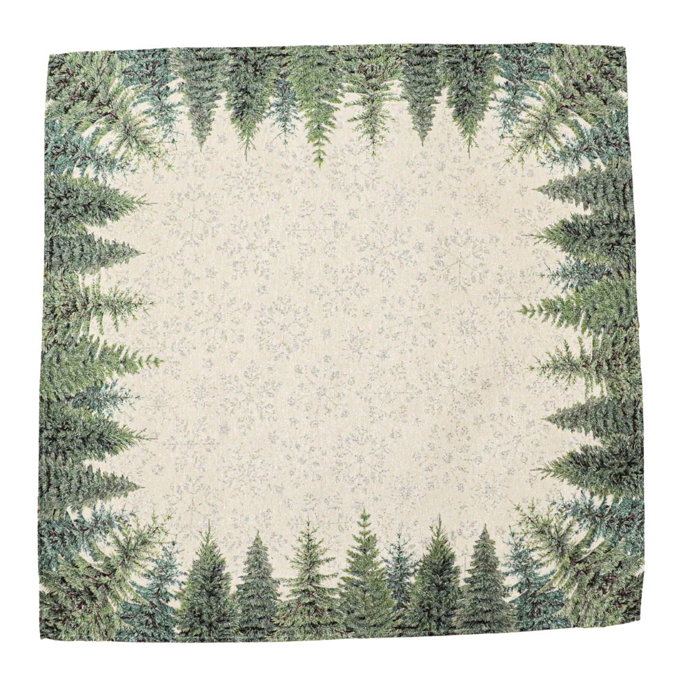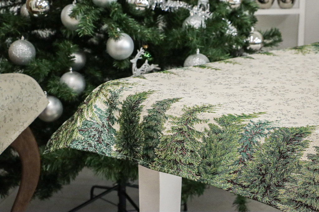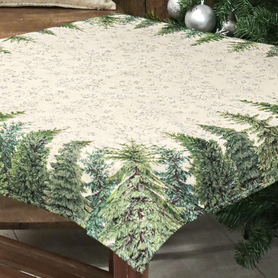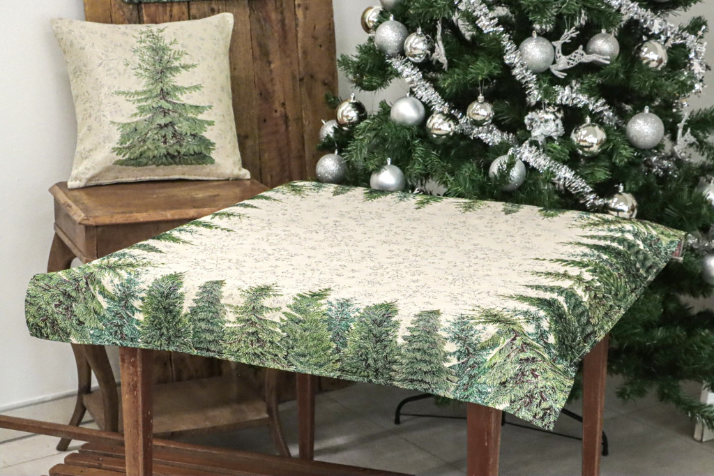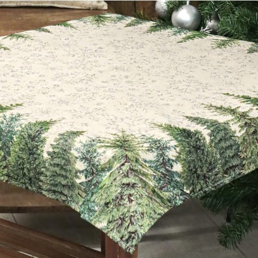 Ez a gyönyörű gépi gobelin karácsonyi asztalterítő a természet varázslatát hozza el az otthonodba. Az elegáns dizájn, amely sűrű fenyőerdőt ábrázol, tökéletesen illik az ünnepi hangulathoz, és meghitt, téli atmoszférát teremt. Ez az asztalterítő kiválóan alkalmas karácsonyi összejövetelekhez, ünnepi vacsorákhoz, vagy bármely alkalomhoz, amikor egy kis téli eleganciát szeretnél hozzáadni a dekorációdhoz.