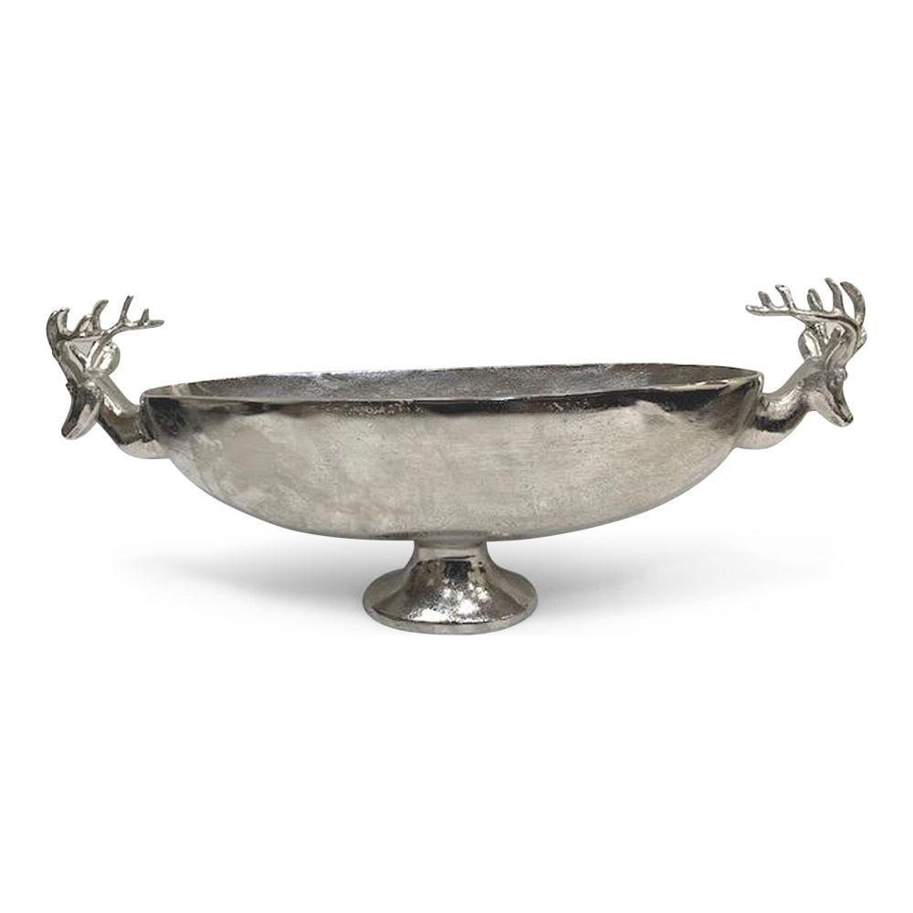 Maratott alumínium tál, szarvasfejekkel díszítve.