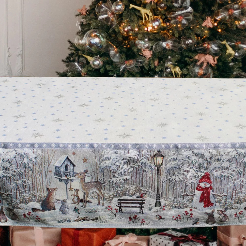 TÉLI ERDŐ ASZTALTERÍTŐ, 137X180 CM, EZÜST LUREX
