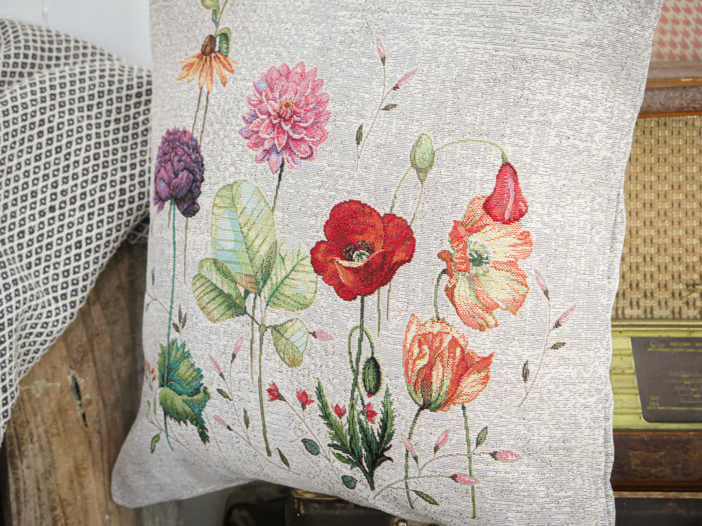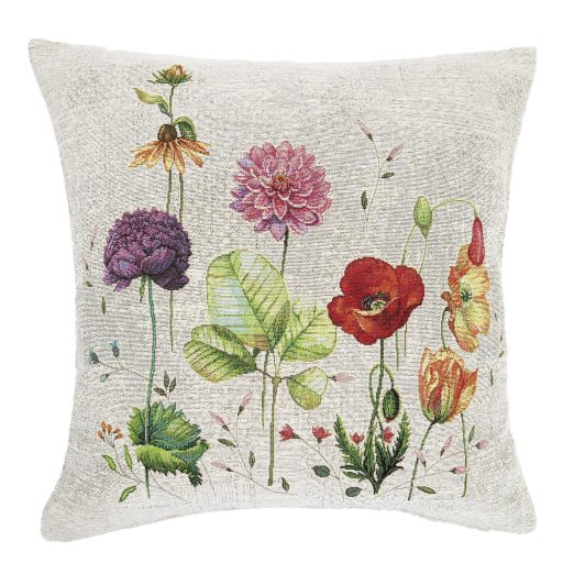 Díszpárna huzat dekoratív, virágos mintával és halvány szürke alappal. Stílusos lakáskiegészítő, amely hosszú éveken át megőrzi színét és minőségét. Jól mutat a fotelekben, kanapékon és a hálószobában is. A termék a párnabelsőt nem tartalmazza.