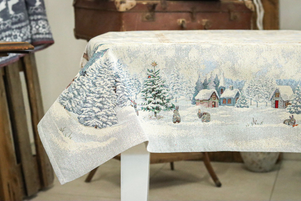 White forest, nyuszik a hóban kollekciónk asztalterítője minden lakás enteriőrjébe könnyen beleilleszkedik. Gyönyörűen mutat az ünnepi asztalon, ezüstös csillogása feldobja a karácsonyi étkezéseket. Megfelelő kezelés mellett hosszú éveking megőrzi szépségét és minőségét.