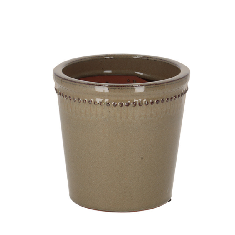 Zománcolt kerámia virágcserép, szürkés barna, 15 cm átmérőjű