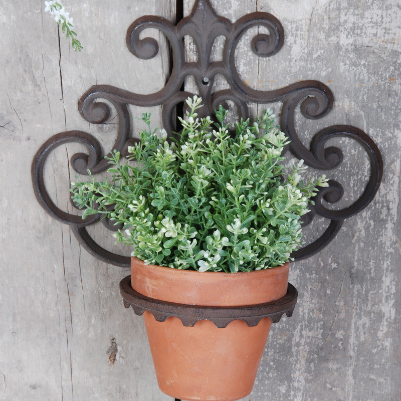 Öntöttvas, rusztikus hangulatú virágtartó klasszikus mintával, amelyben pompásan mutatnak cserepes virágaink. Antik barna színben kapható, a falra könnyen felszerelhető. Dekoráljuk vele az erkélyünk vagy a terasz falát. Öntöttvas jellegéből adódóan külső elhelyezés esetén, a korrózió megjelenésével egy patinásabb, rusztikusabb termék válik belőle. TIPP: A felszereléshez szükséged lesz az ehhez megfelelő kiképzésű csavarra is. A termék a csavart nem tartalmazza.